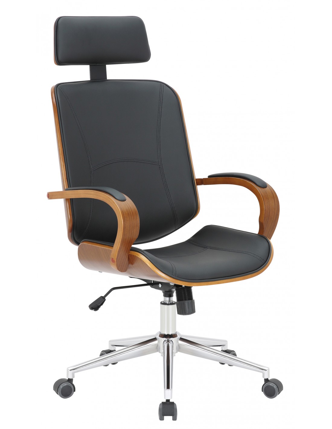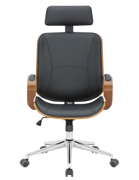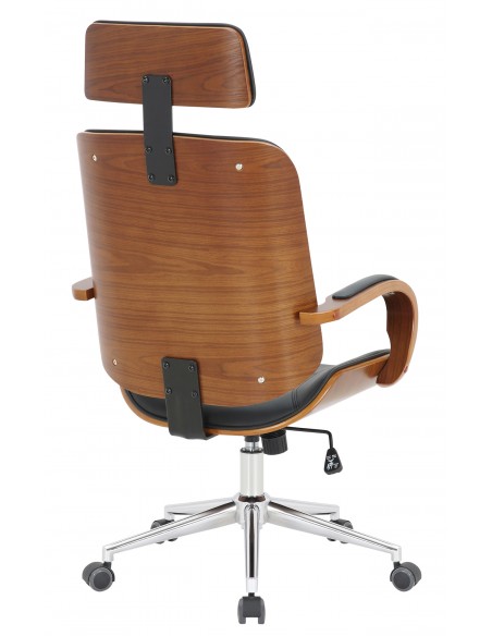 Kontorstol i formtræ og kunstlæder H118 - 125 cm - Valnød/Sort