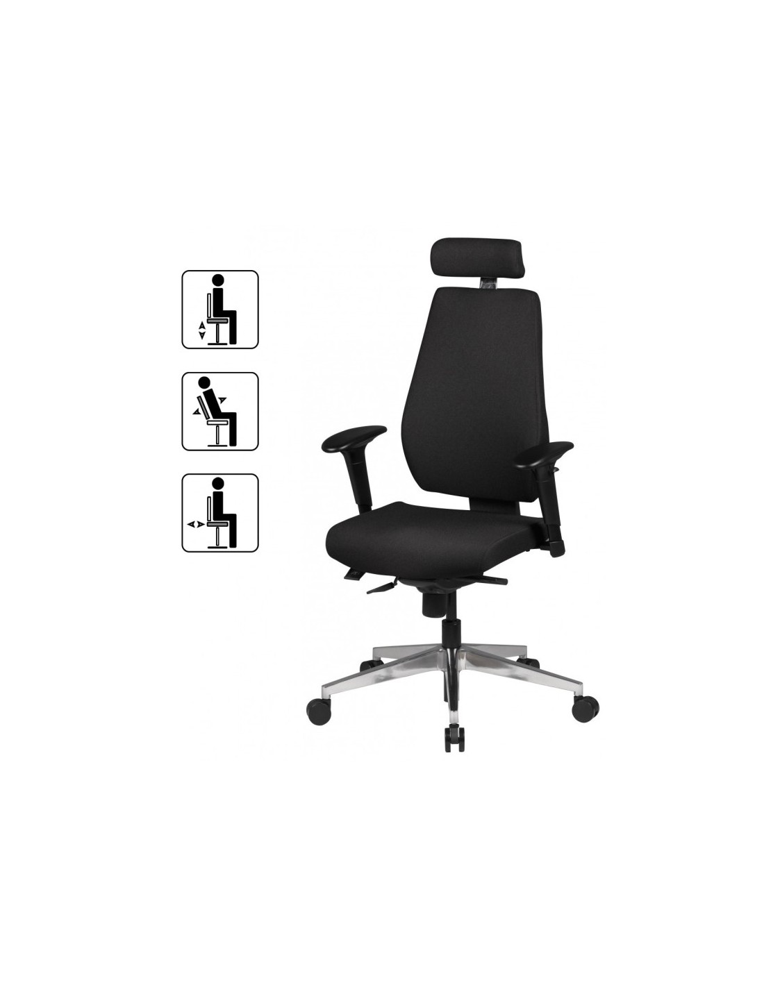 • Højdejusterbare armlæn og vipbart ryglæn