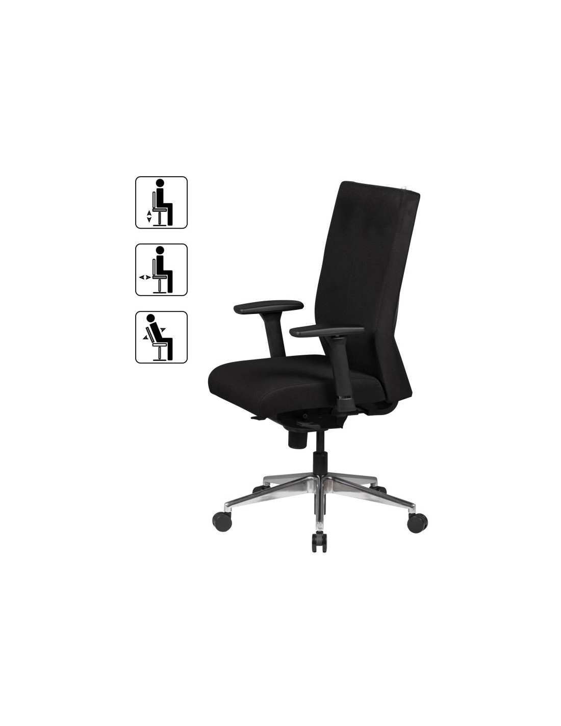 • Højdejusterbare armlæn og vipbart ryglæn