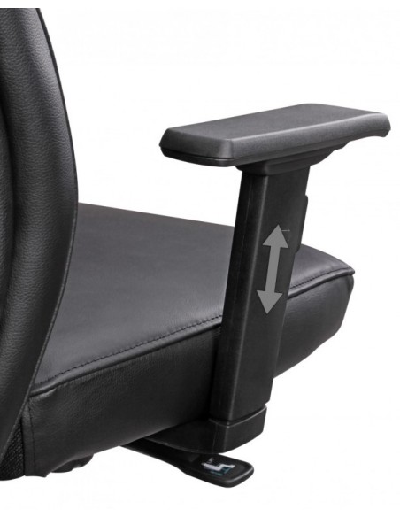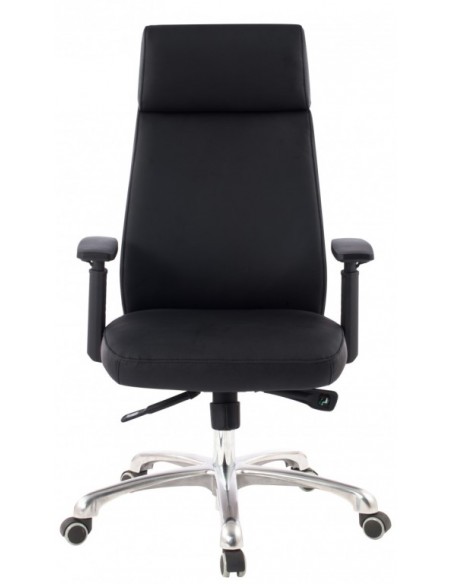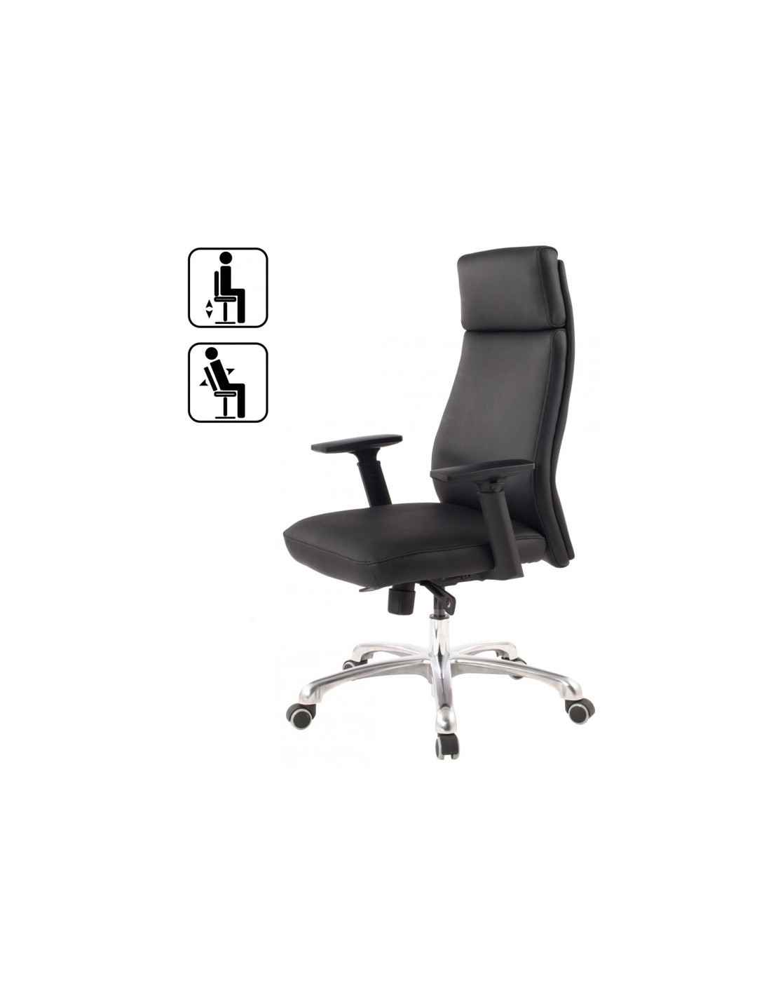 Kontorstol fremstillet i et design af kromlakeret metal og sort ægte læder. Kontorstolen måler 107,5 - 117,5 cm i højden over ryggen og med en siddehøjde på 43 - 53 cm. Armlænene er justerbare i højden og ryglænet vipbart.