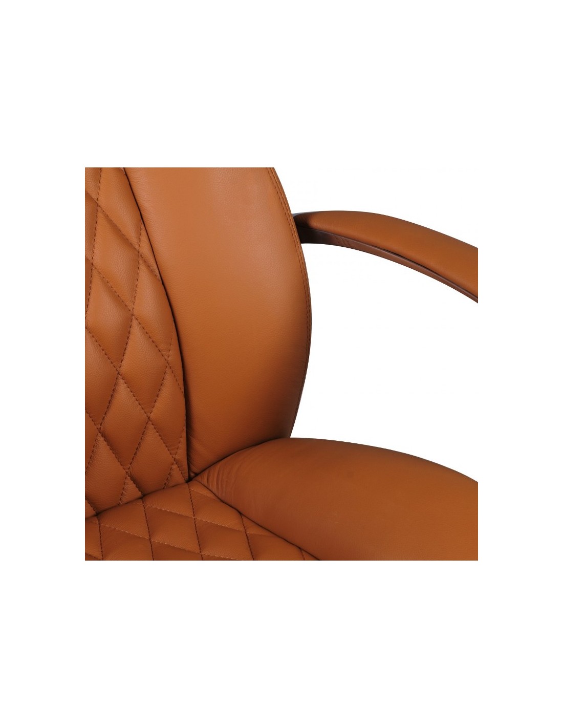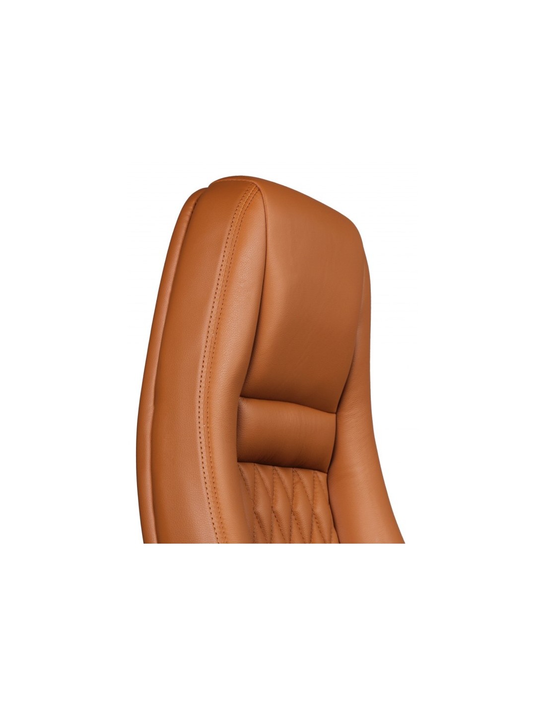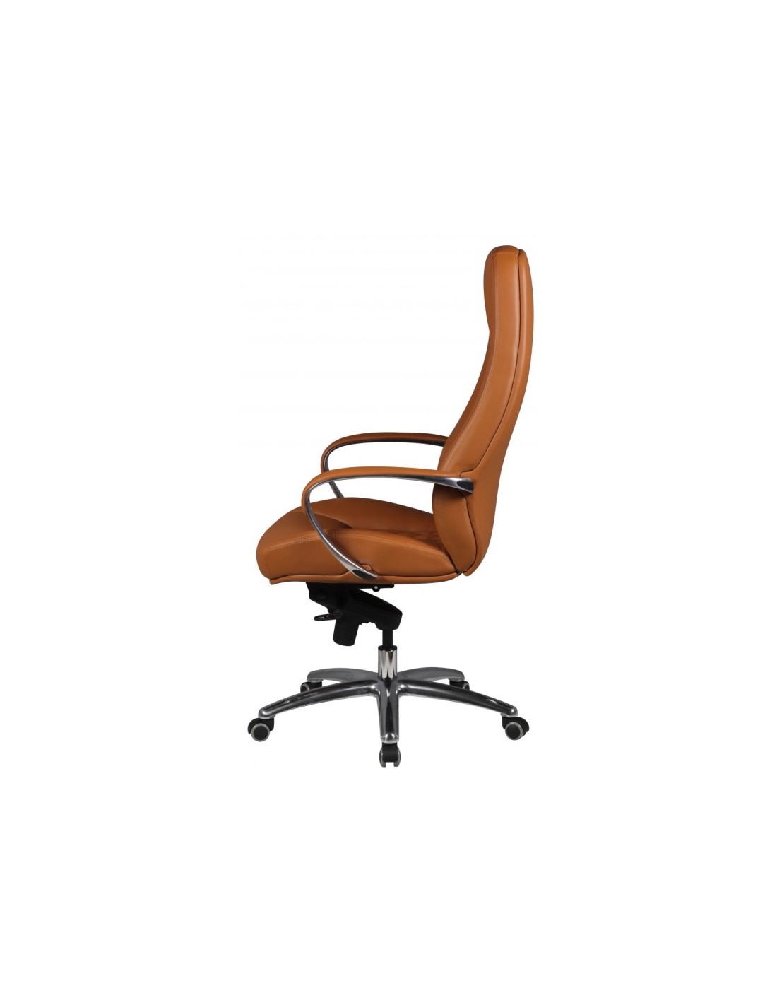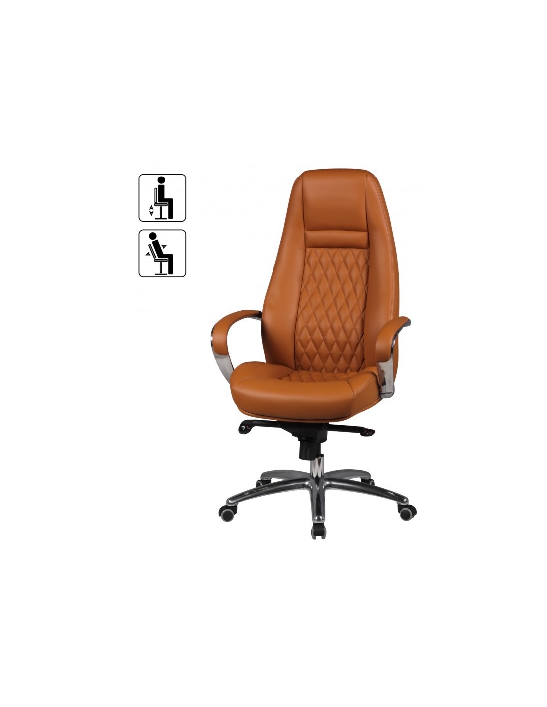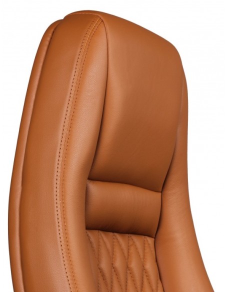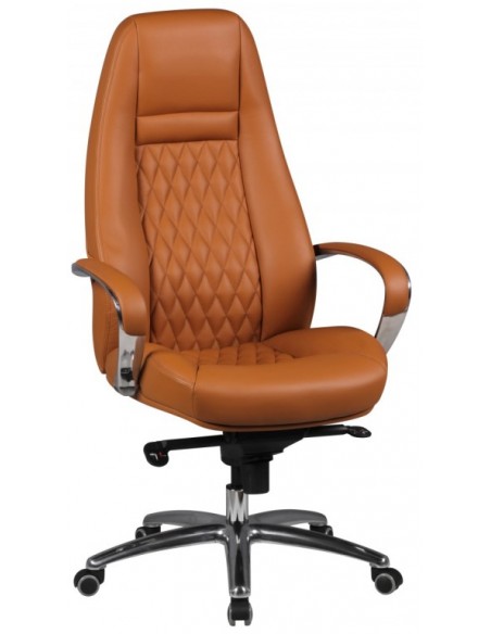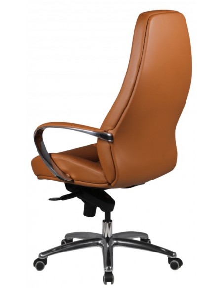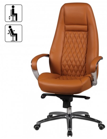 Kontorstol fremstillet i et design af kromlakeret metal og kamelbrun ægte læder. Kontorstolen måler 120 - 130 cm i højden over ryggen og med en siddehøjde på 48 - 58 cm.