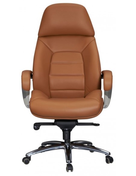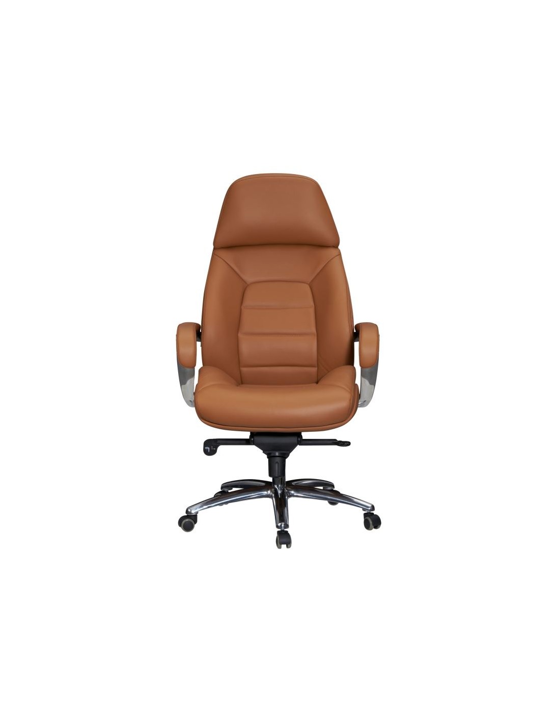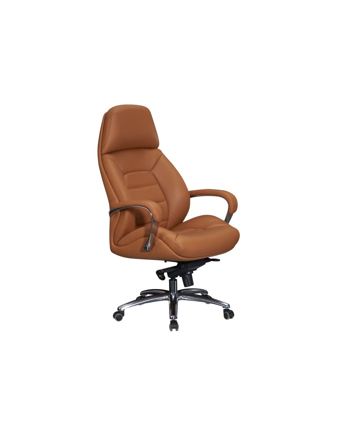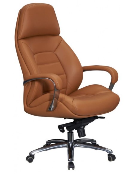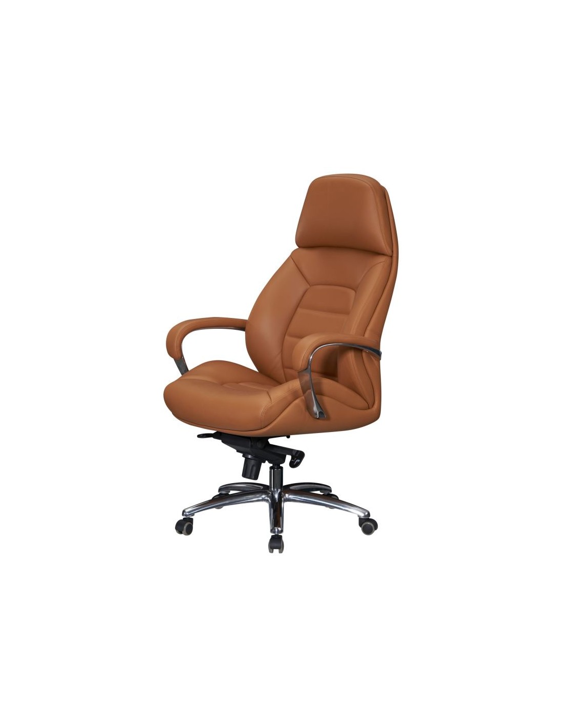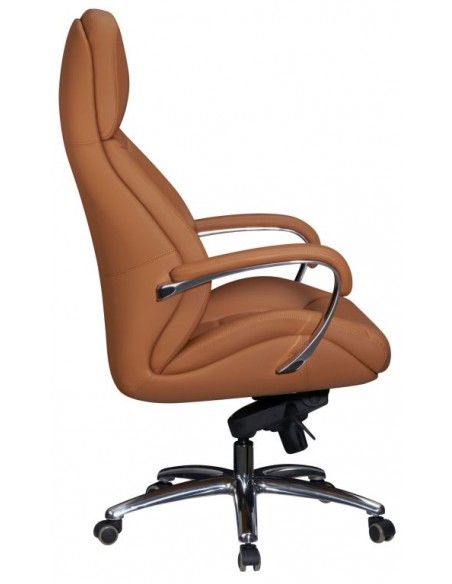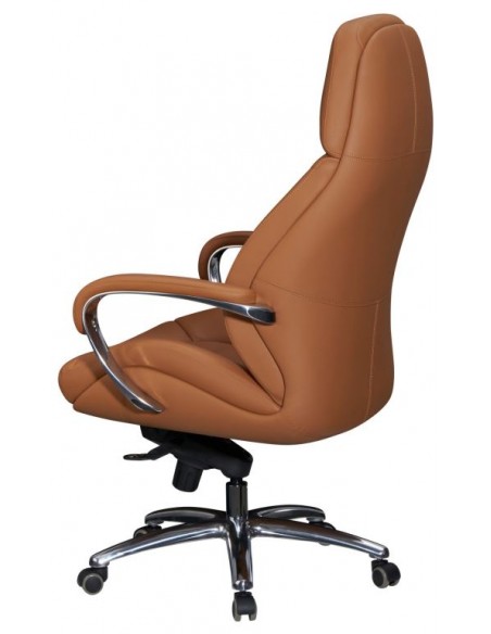 Kontorstol fremstillet i et design af kromlakeret metal og kamelbrun ægte læder. Kontorstolen måler 127 - 136,5 cm i højden over ryggen og med en siddehøjde på 45 - 54,5 cm.
