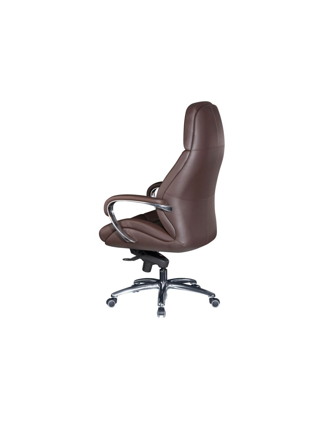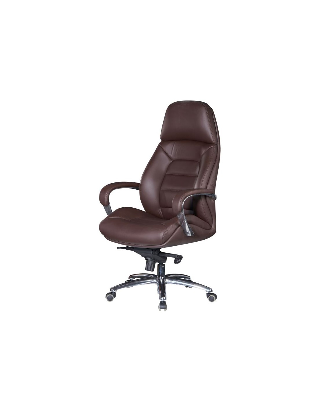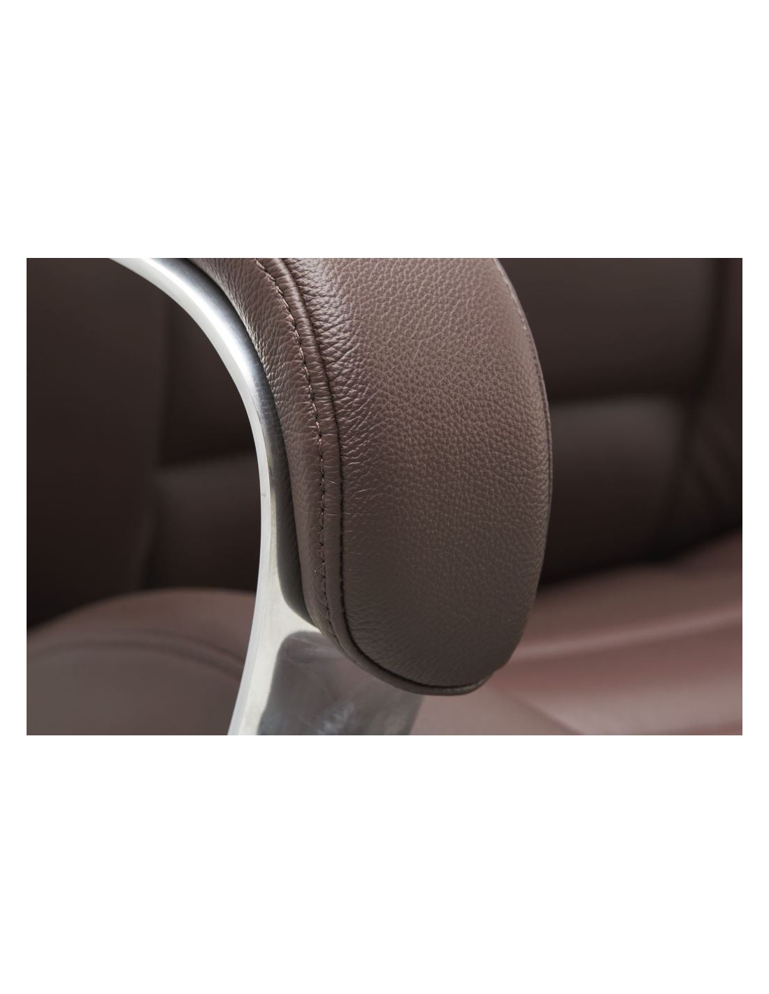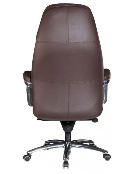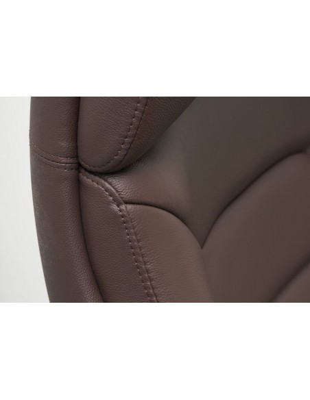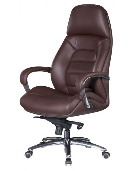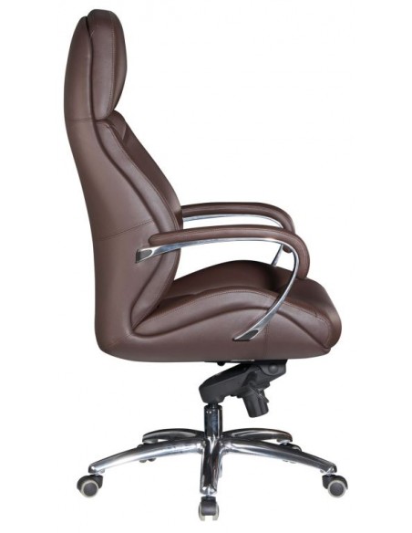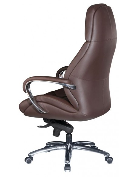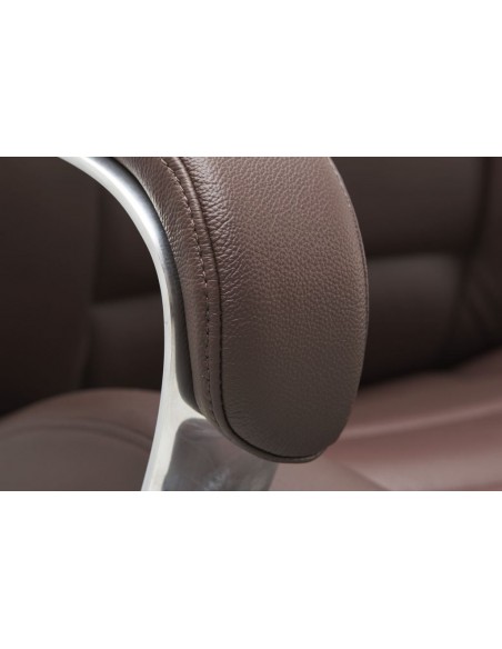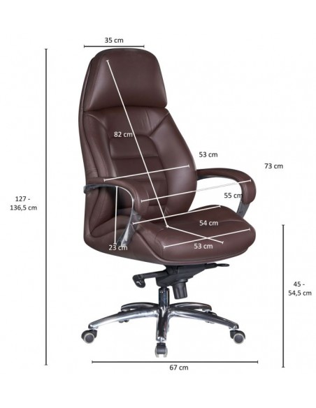 Kontorstol fremstillet i et design af kromlakeret metal og mørkebrun ægte læder. Kontorstolen måler 127 - 136,5 cm i højden over ryggen og med en siddehøjde på 45 - 54,5 cm.