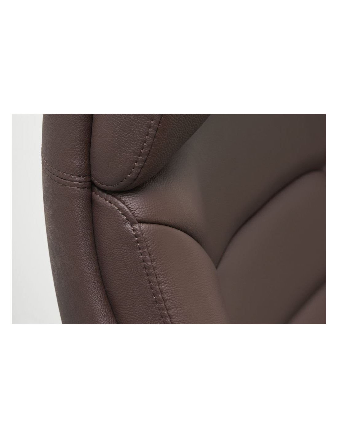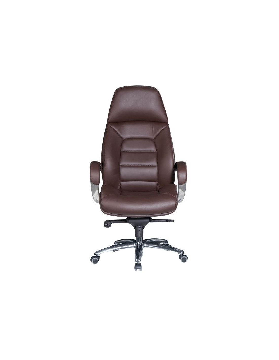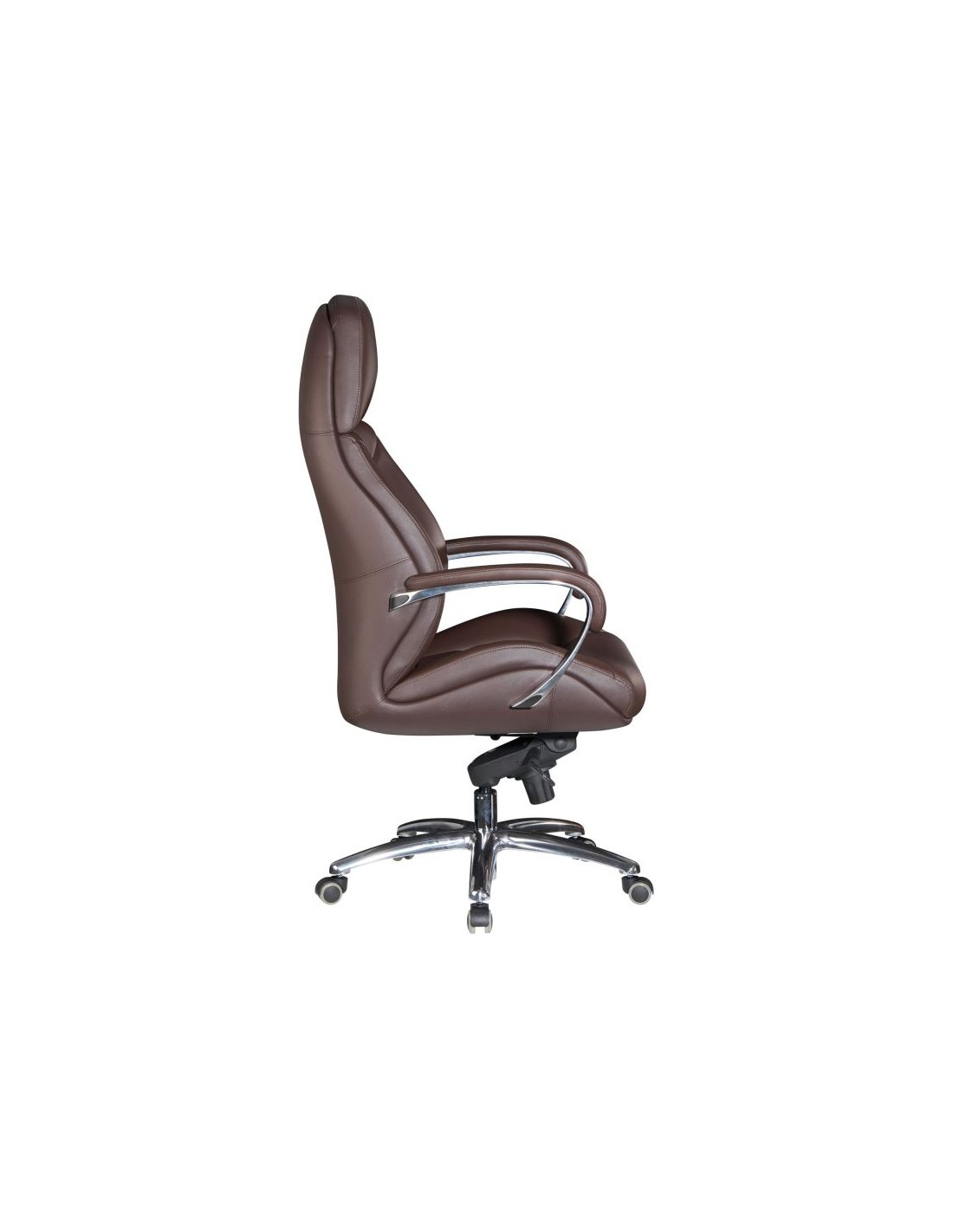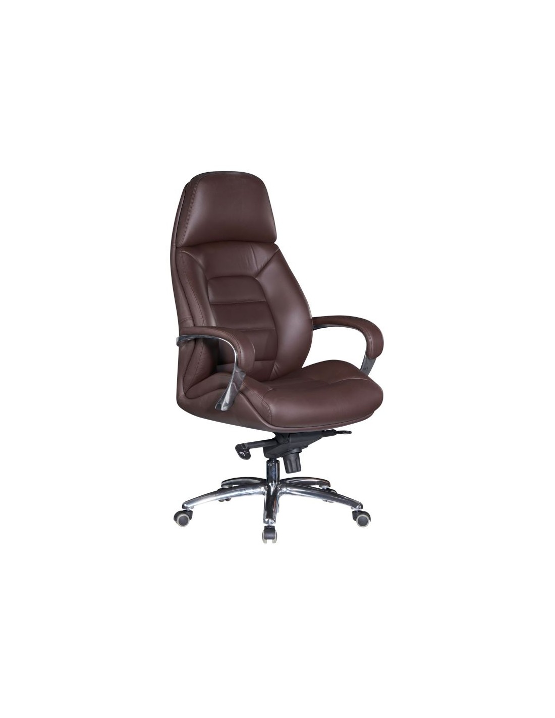 Kontorstol fremstillet i et design af kromlakeret metal og mørkebrun ægte læder. Kontorstolen måler 127 - 136,5 cm i højden over ryggen og med en siddehøjde på 45 - 54,5 cm.