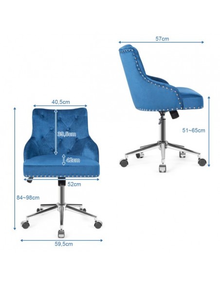 Kontorstol i velour H84 - 98 cm - Krom/Blå