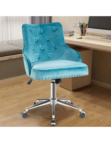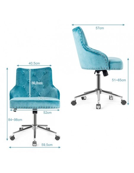 Kontorstol i velour H84 - 98 cm - Krom/Turkis