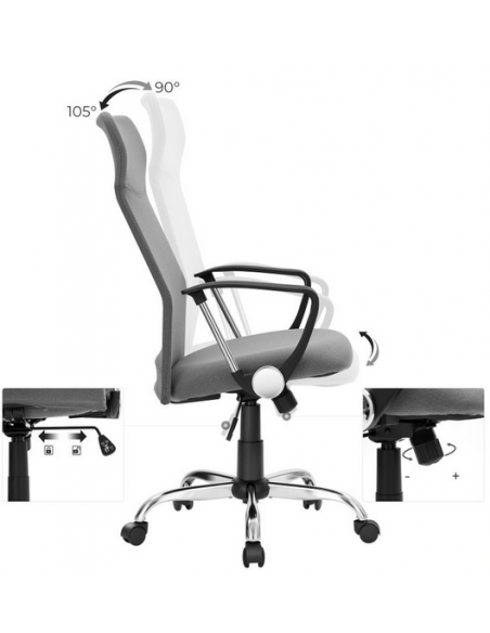 Kontorstol i metal og polyester H110 - 120 cm - Grå