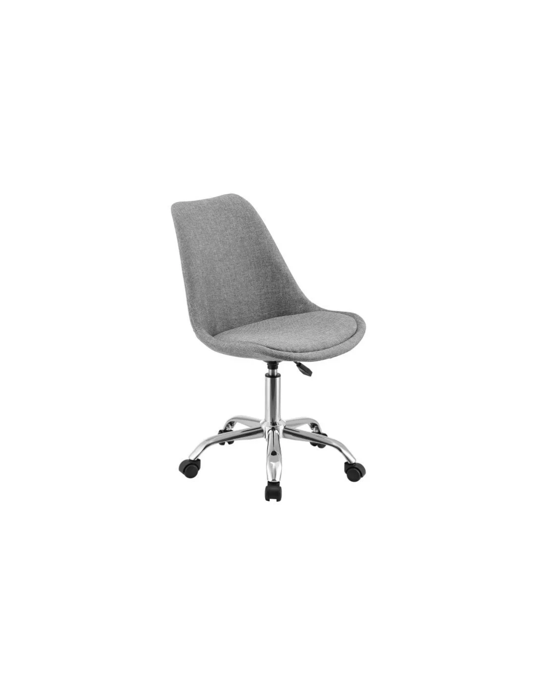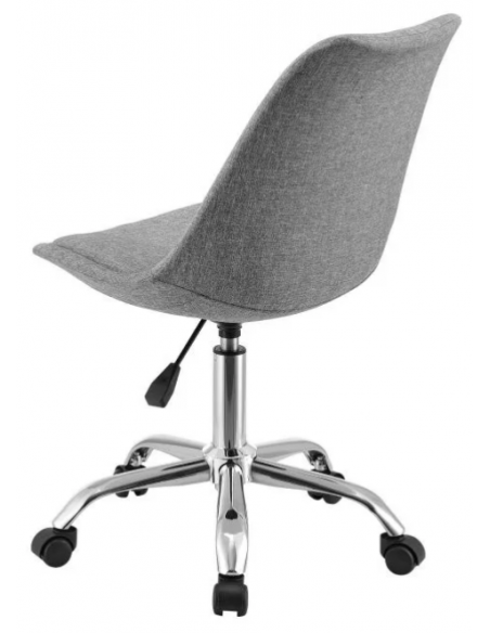 Kontorstol udført i et design af kromlakeret metal og grå polyester. Kontorstolen måler 83 - 93 cm i højden over ryggen og 44 - 54 cm i siddehøjden.