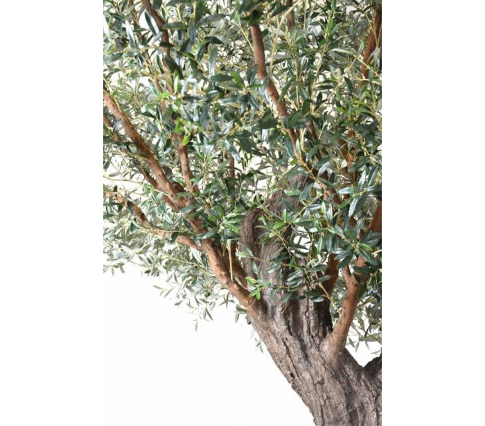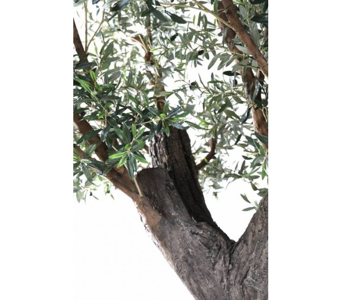 Stort kunstigt oliventræ i et smukt fremstillet design, med en højde på cirka 390 cm. Træet har mange blade og en naturtro stamme. Træet skal fastgøres til gulv, af hensyn til sikkerhed.