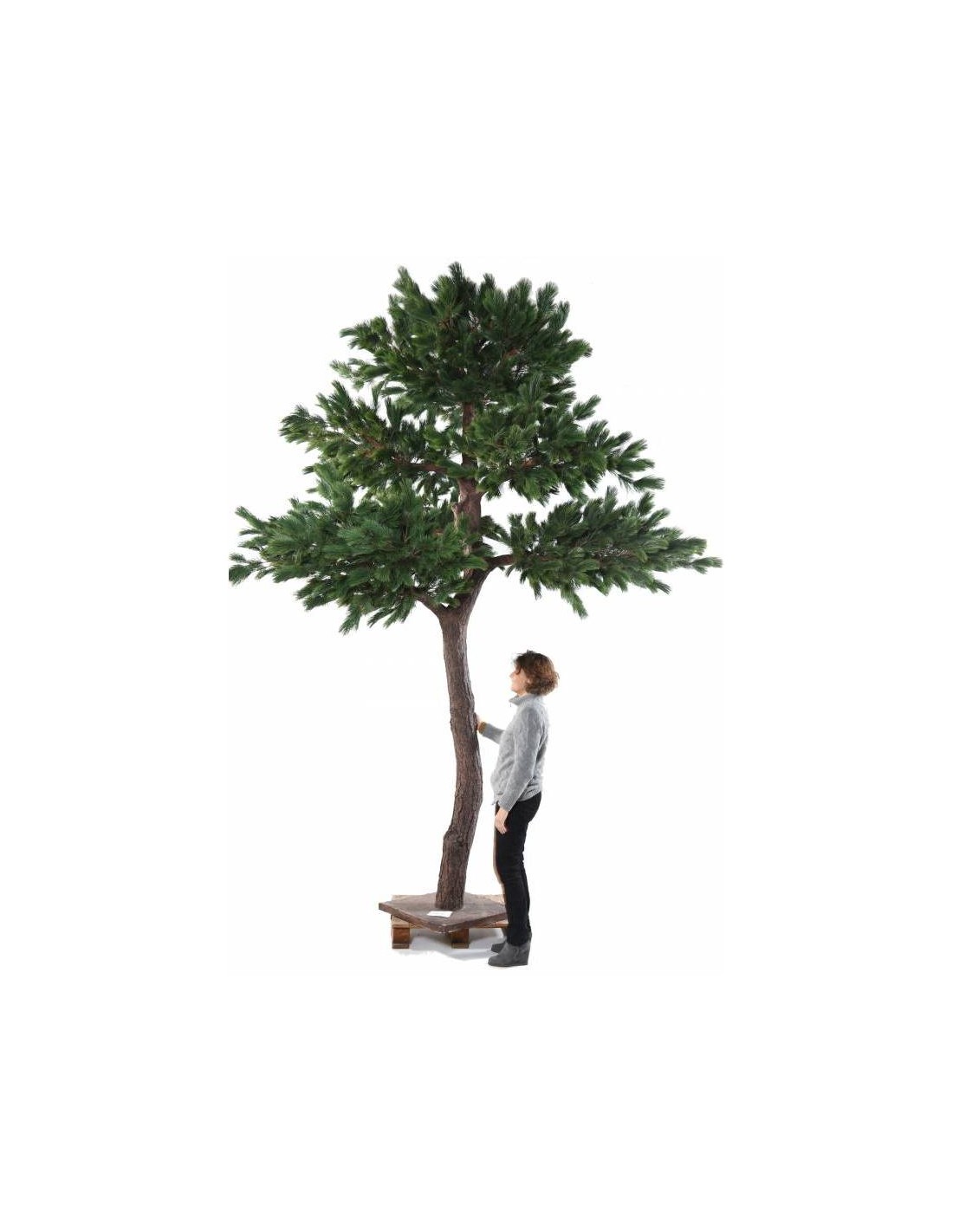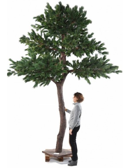Stort luksuriøst kunstigt fyrretræ i et smukt fremstillet design, med en højde på cirka 400 cm. Træet har mange nåle og en naturtro stamme. Træet bør fastgøres til gulv, af hensyn til sikkerhed.