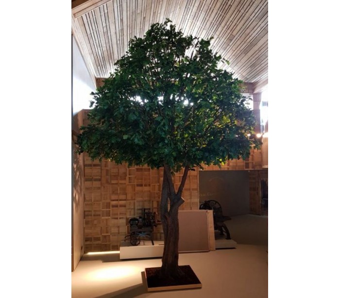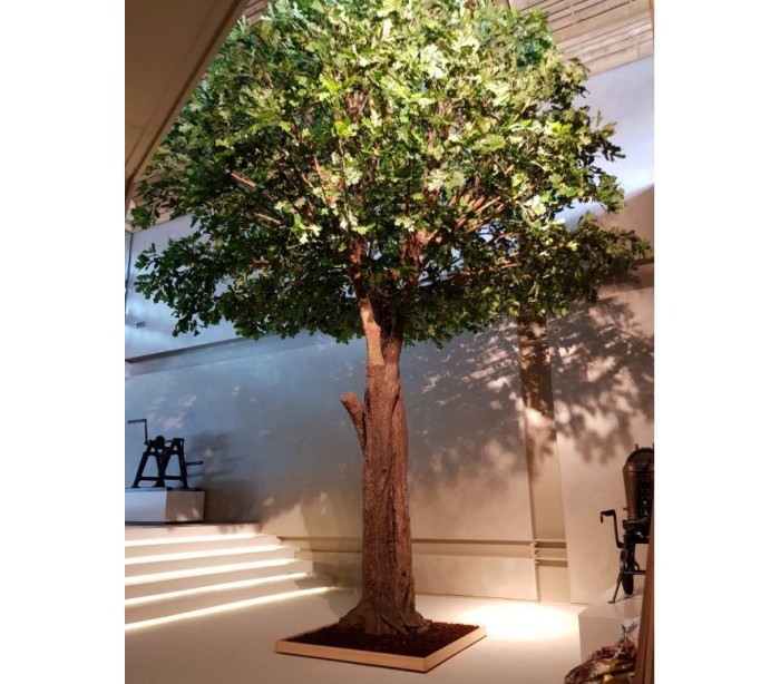 Stort kunstigt træ i et smukt fremstillet design, med en højde på cirka 620 cm. Træet har mange blade og en naturtro stamme. Træet skal fastgøres til gulv, af hensyn til sikkerhed.