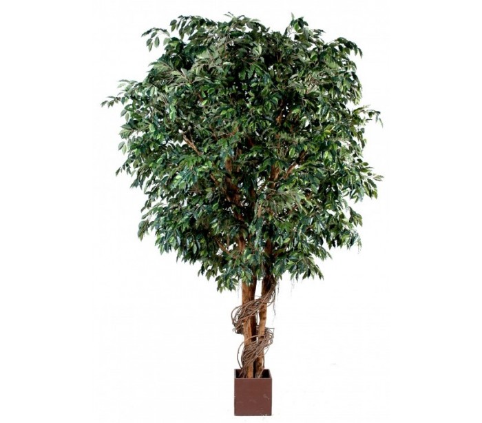 Stort kunstigt ficustræ i et smukt fremstillet design, med en højde på cirka 650 cm. Træet har mange blade og en naturtro stamme. Træet bør fastgøres til gulv, af hensyn til sikkerhed.