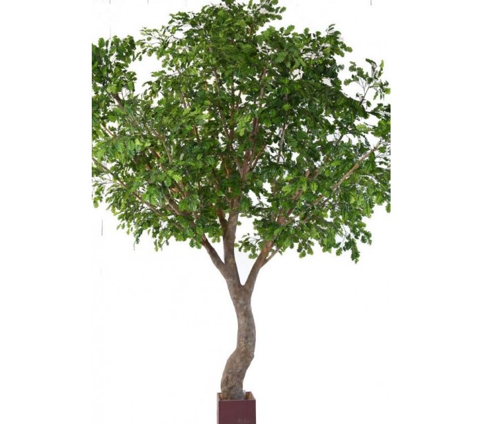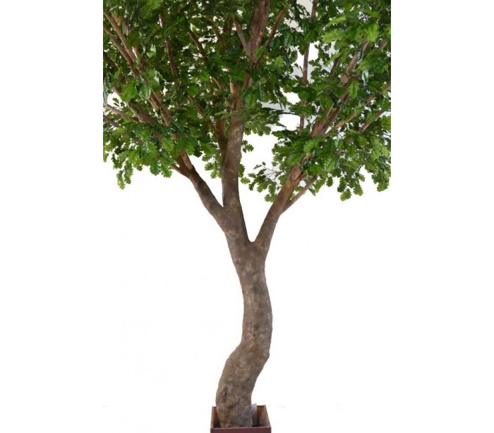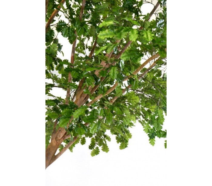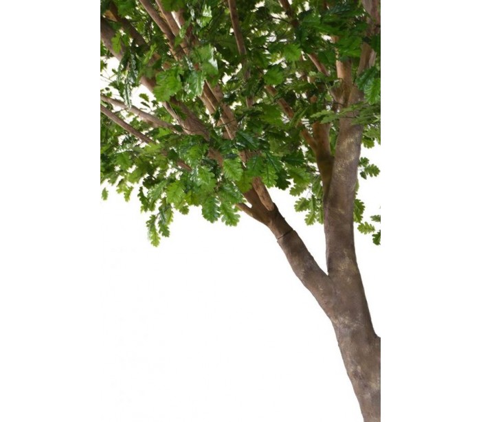 Stort kunstigt egetræ i et smukt fremstillet design, med en højde på cirka 420 cm. Træet har mange blade og en naturtro stamme. Træet bør fastgøres til gulv, af hensyn til sikkerhed.