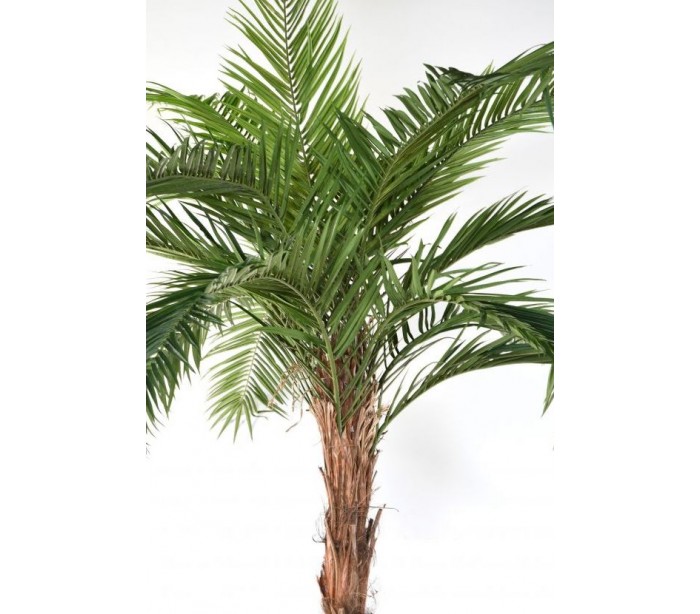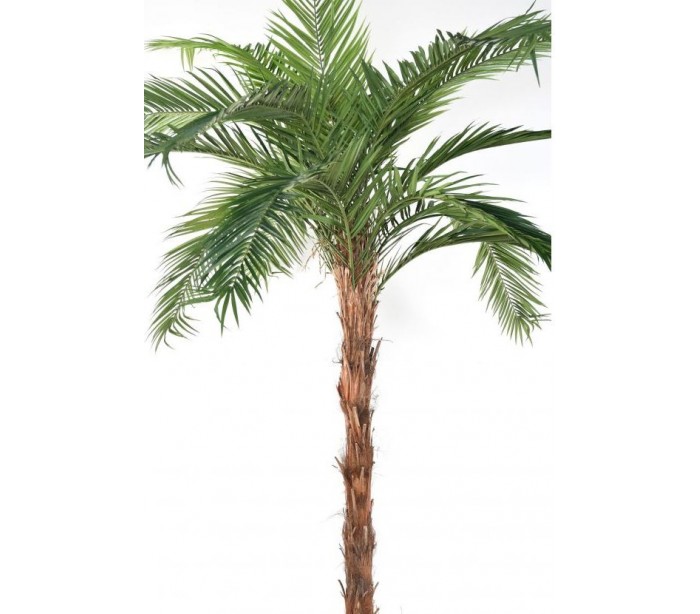 Stor kunstig palmetræ i et smukt fremstillet design, med en højde på cirka 370 cm. Træet har mange blade og en naturtro stamme. Træet bør fastgøres til gulv, af hensyn til sikkerhed.