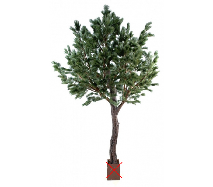Stort kunstigt fyrretræ i et smukt fremstillet design, med en højde på cirka 450 cm. Træet har mange nåle og en naturtro stamme. Træet skal fastgøres til gulv, af hensyn til sikkerhed.