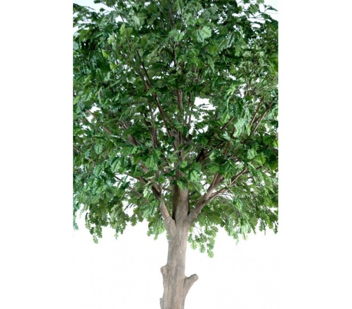 Stort kunstigt egetræ i et smukt fremstillet design, med en højde på cirka 400 cm. Træet har mange blade og en naturtro stamme. Træet skal fastgøres til gulv, af hensyn til sikkerhed.