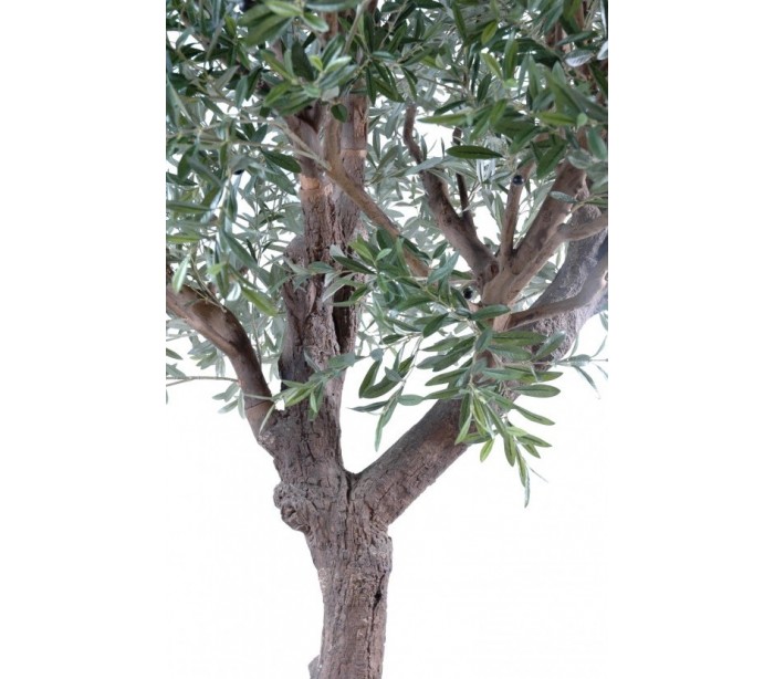 Stort kunstigt oliventræ i et smukt fremstillet design, med en højde på cirka 270 cm. Træet har mange blade og en naturtro stamme.