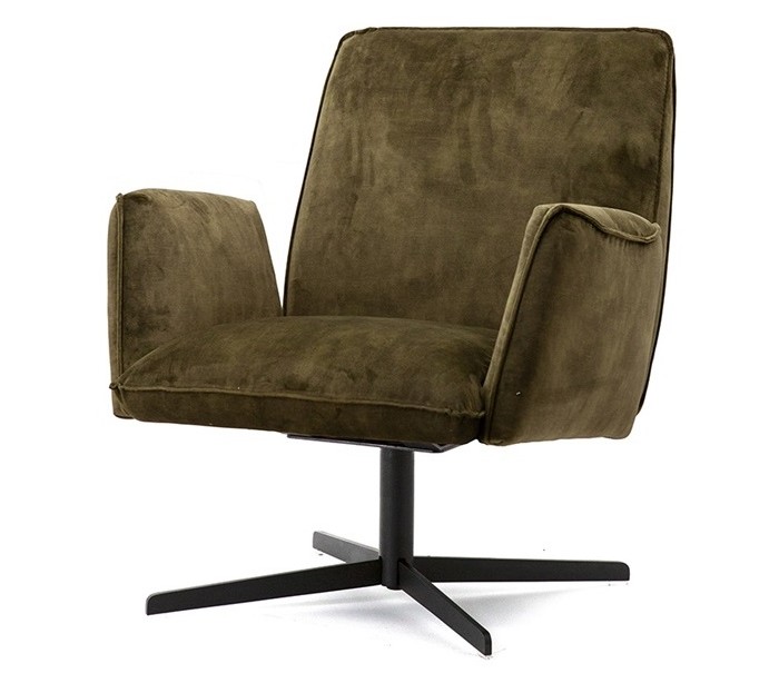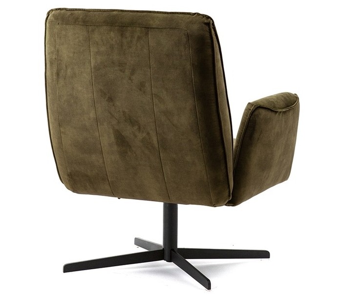 Lænestol i et moderne design, fremstillet i velour og med stel i sortlakeret metal. Stolen måler 88 cm i højden og 75 cm i bredden.