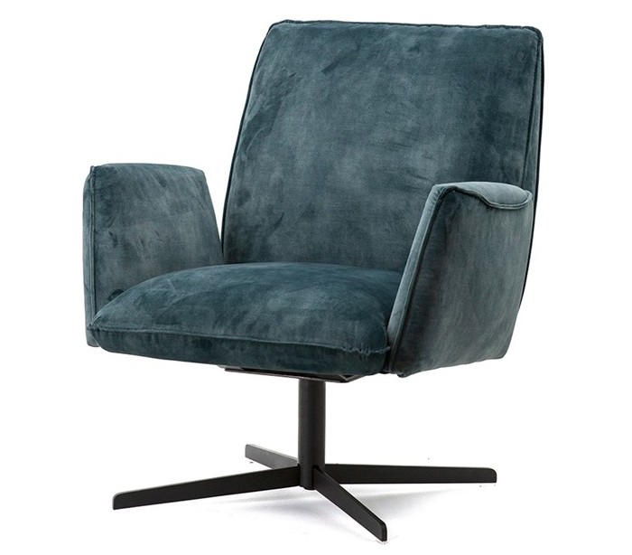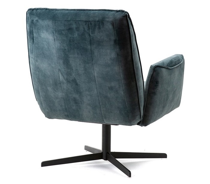 Lænestol i et moderne design, fremstillet i velour og med stel i sortlakeret metal. Stolen måler 88 cm i højden og 75 cm i bredden.