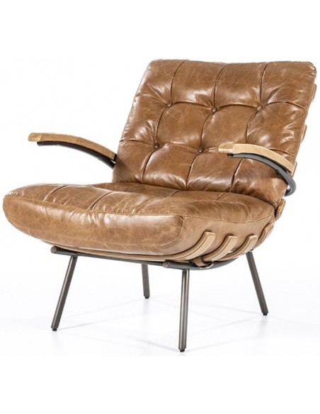 Lænestol i læder og egetræ H80 cm - Cognac