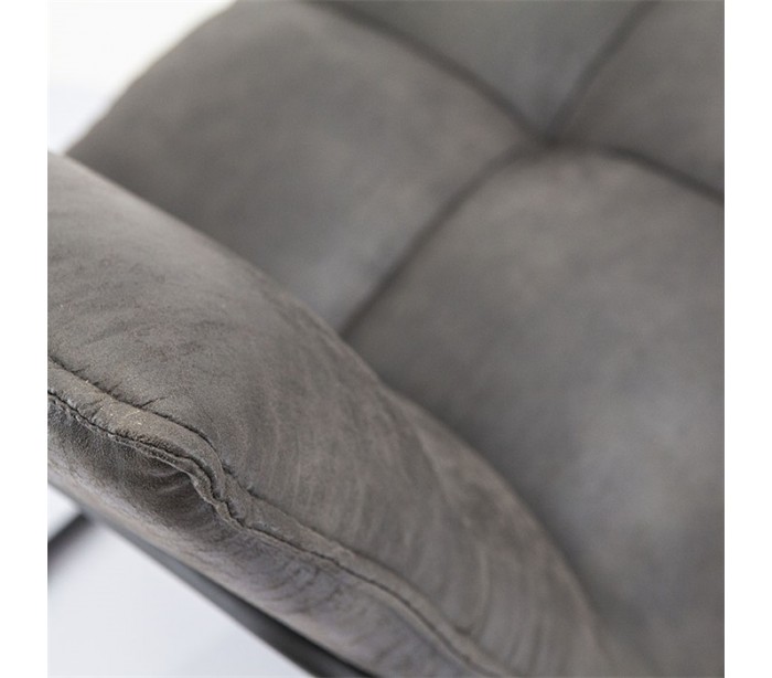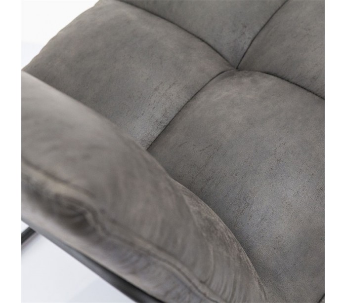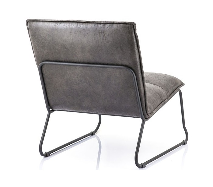 Lænestol i et moderne design, fremstillet i antracit polyester med coating (føles som ruskind) og med stel i sortlakeret metal. Stolen måler 76 cm i højden og 82 cm i bredden.