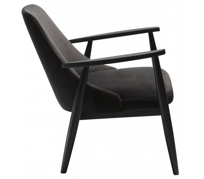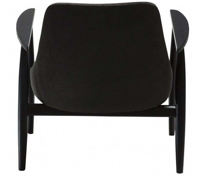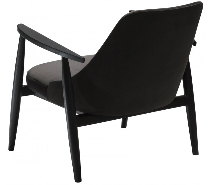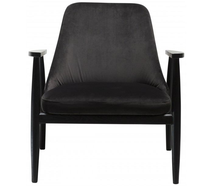 Loungestol i et smukt design, fremstillet med sæde i meteorit sort velour og ben i sortbejset ask træ. Loungestolen måler 73 cm i højden over ryggen og 40 cm i siddehøjde.