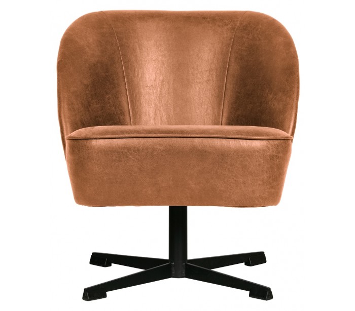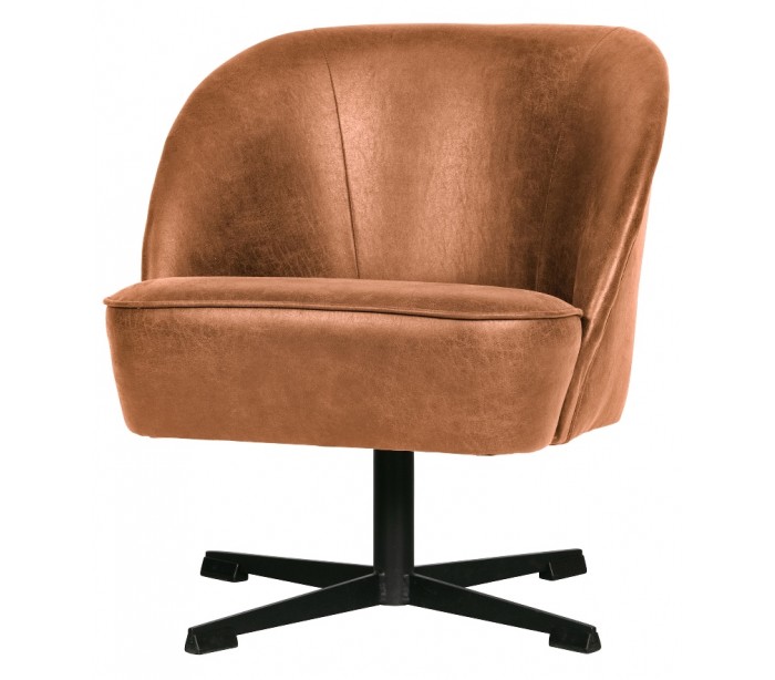 Moderne rotérbar lænestol udført i et flot design af vintage cognac læder (70% ægte læder/30% polyester). Lænestolen måler 65 cm i bredden og er polstret med højkvalitets skum.