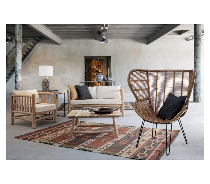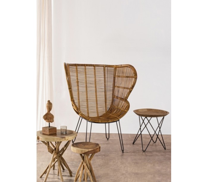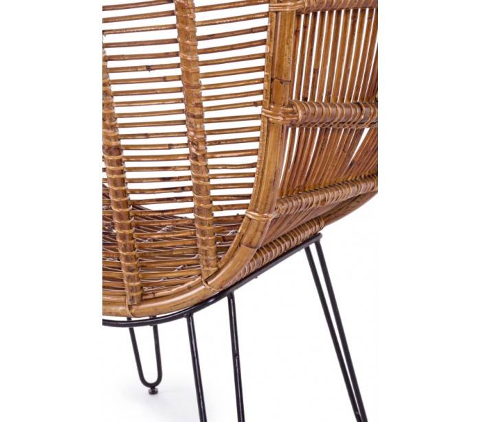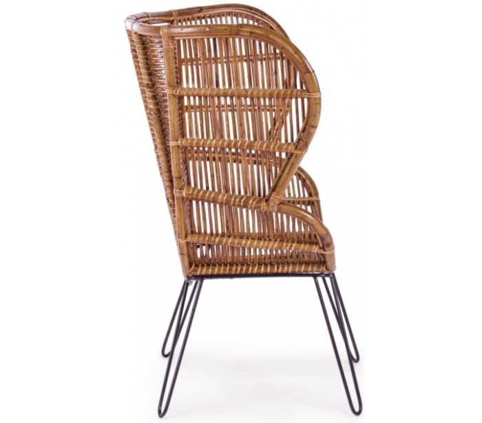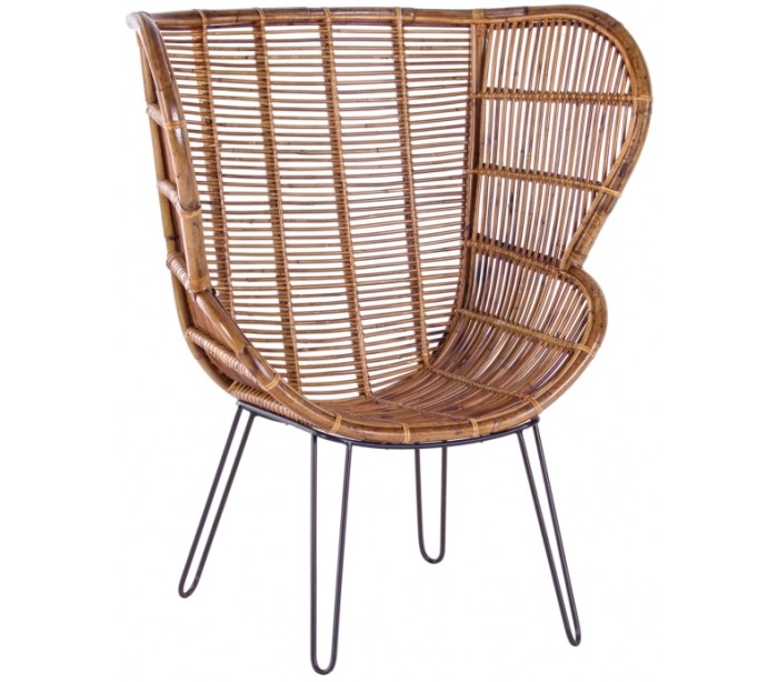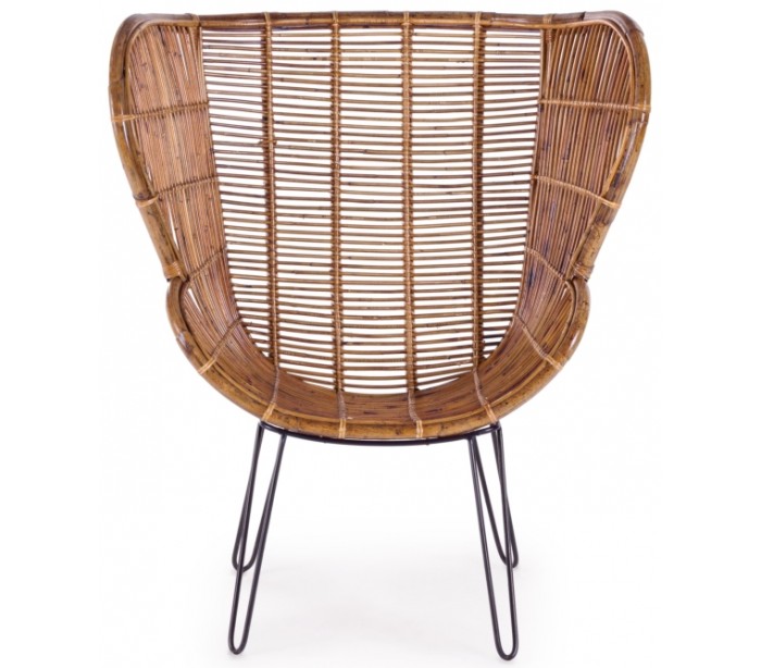 Lænestol i et smukt udført design af rattan og med stel i sortlakeret metal. Stolen måler 118 cm i højden og 100 cm i bredden. Siddehøjden er 42 cm.