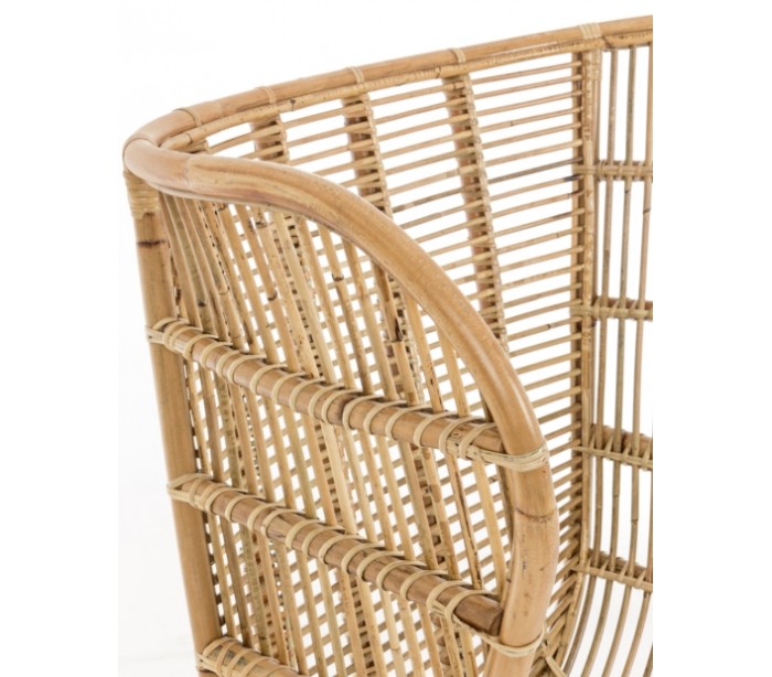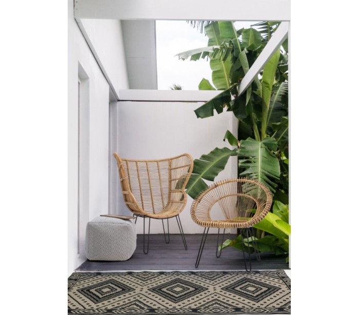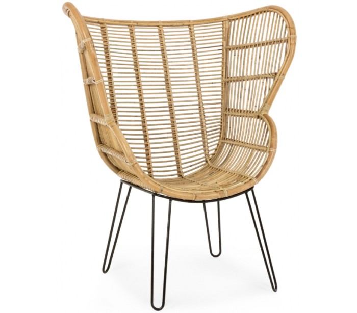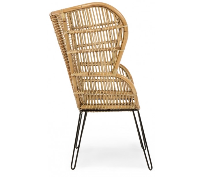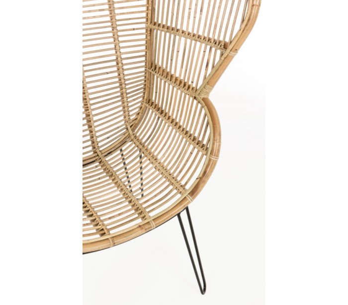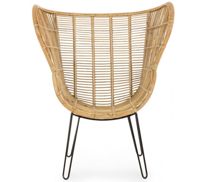 Lænestol i et smukt udført design af rattan og med stel i sortlakeret metal. Stolen måler 118 cm i højden og 100 cm i bredden. Siddehøjden er 42 cm.