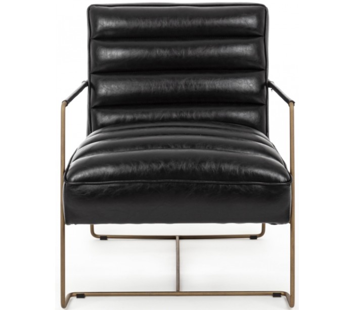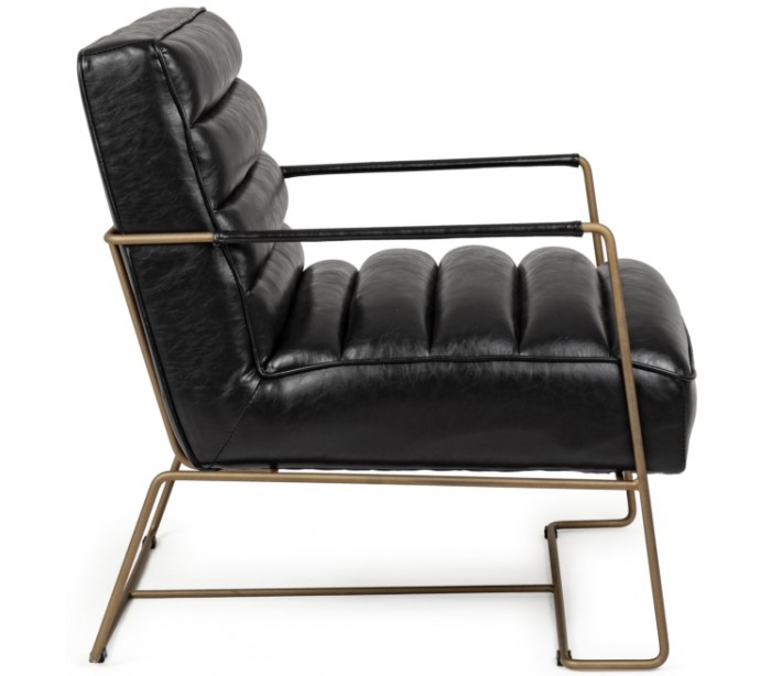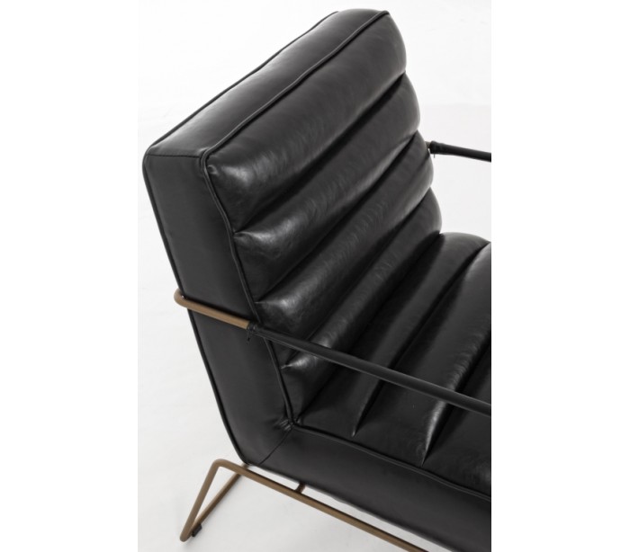 Lænestol i et design af vintage sort kunstlæder og med stel i antik messinglakeret metal. Stolen måler 80 cm i højden og 62,5 cm i bredden. Siddehøjden er 45 cm.