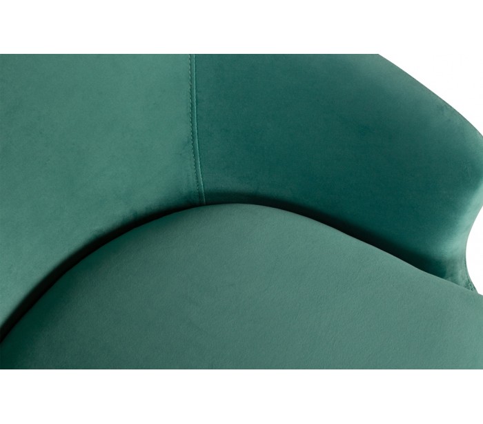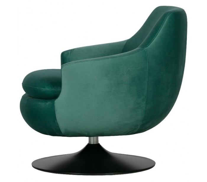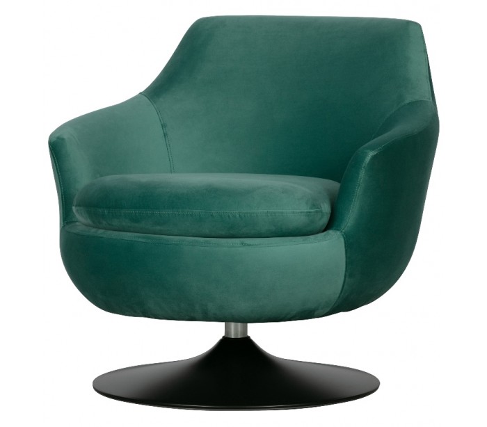 Moderne rotérbar lænestol udført i et flot design af teal velour. Lænestolen måler 79 cm i bredden og er polstret med højkvalitets skum.