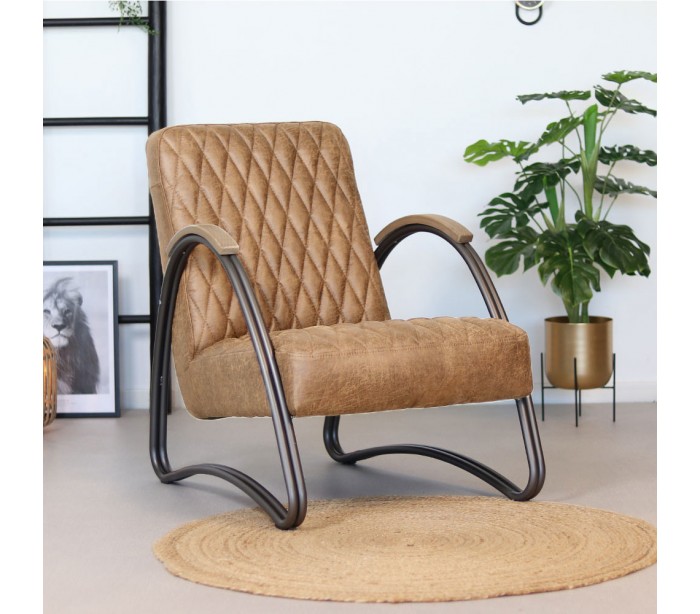 Ivy lænestol i et design af øko-læder (30% Polyester/70% Læder) og med stel i antracitfarvet metal med armlæn i træ. Stolen måler 80 cm i højden over ryggen og med siddehøjde på 40 cm.