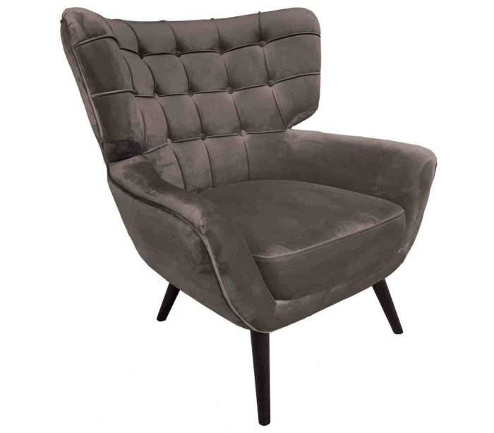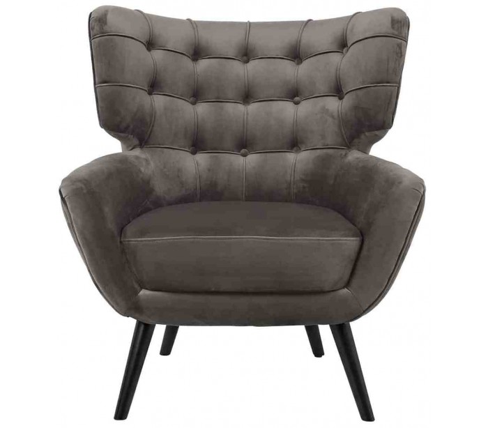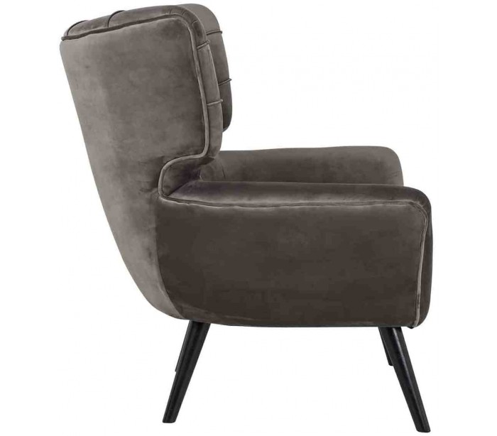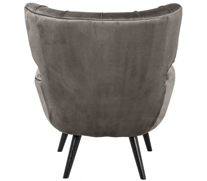 Lænestol i et design fra hollandske Richmond Interiors. Lænestolen er fremstillet i stengrå velour og med ben i sortlakeret træ. Stolen måler 94 cm i højden over ryggen og 85 x 85 cm i bredde og dybde.