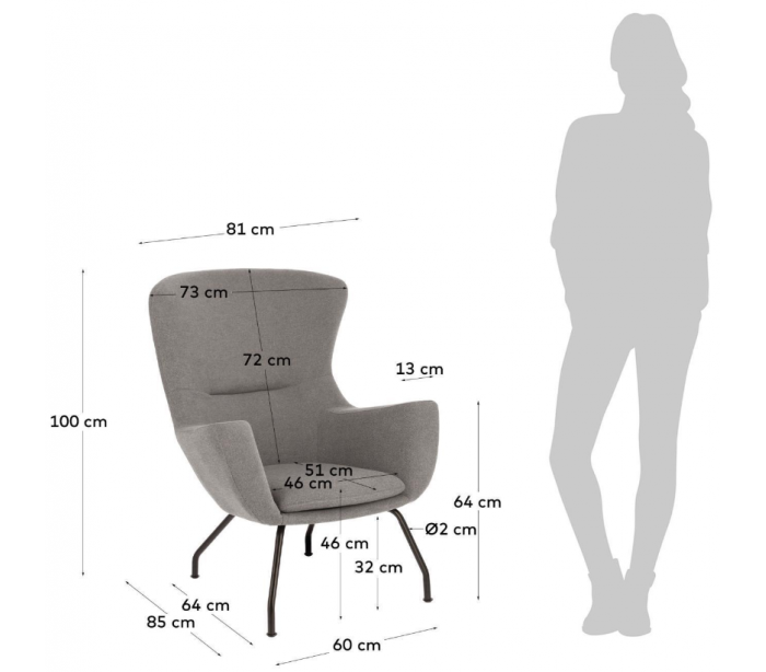 Lænestol i et design fra LaForma. Stolen er fremstillet i grå tekstil og med stel i sortlakeret metal. Stolen måler 100 cm i højden over ryggen og 81 x 85 cm i bredde og dybde.