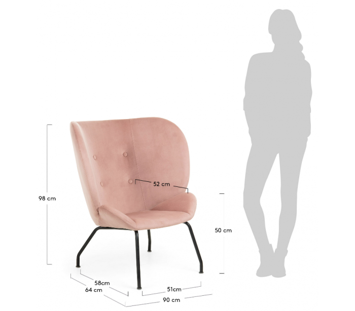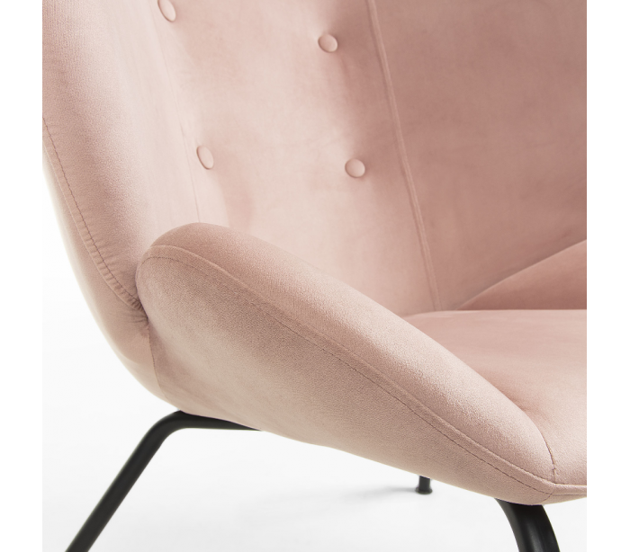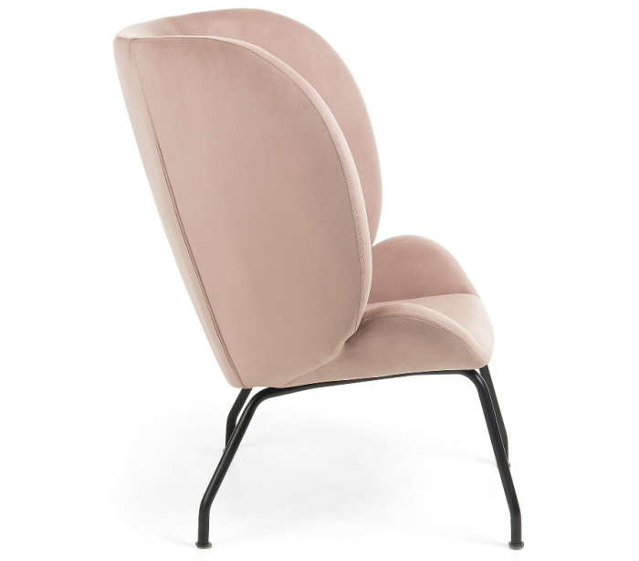 Lænestol i et design fra LaForma. Stolen er fremstillet i pink velour og med stel i sortlakeret metal. Stolen måler 98 cm i højden over ryggen og 90 x 82 cm i bredde og dybde.
