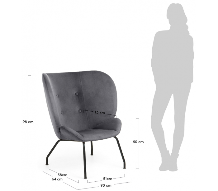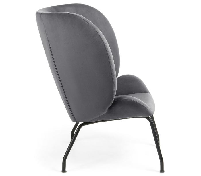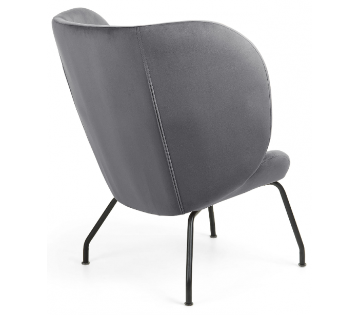 Lænestol i et design fra LaForma. Stolen er fremstillet i mørkegrå velour og med stel i sortlakeret metal. Stolen måler 98 cm i højden over ryggen og 90 x 82 cm i bredde og dybde.