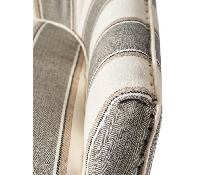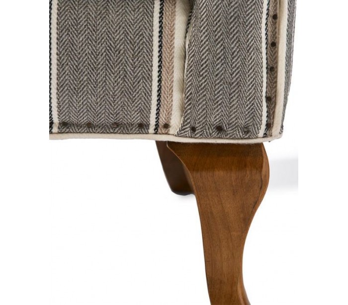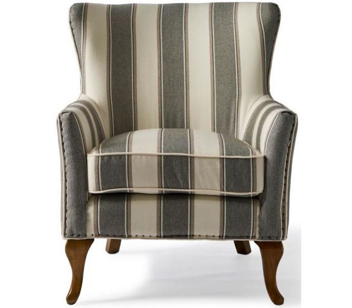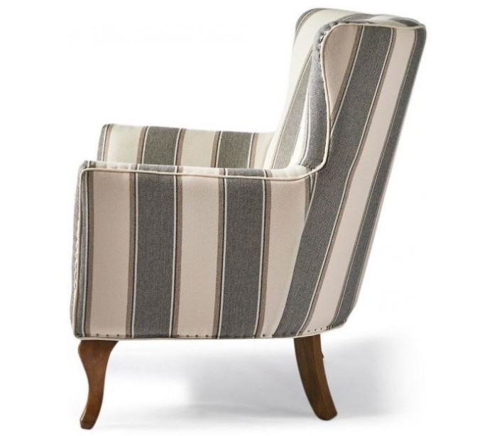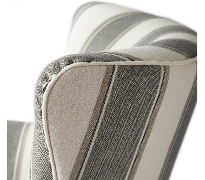Riviera Maison lænestol i et amerikansk inspireret look af grå og hvidstribet polyester. Stolen måler 90 cm i højden over ryggen og 74 cm i bredden.