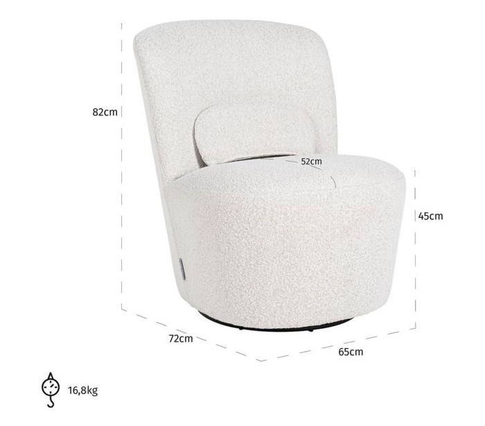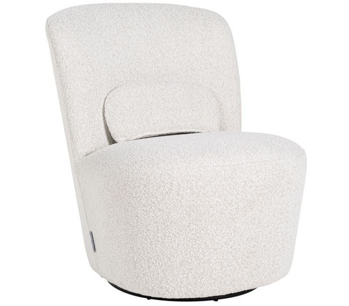 Lænestol i et design fra hollandske Richmond Interiors. Lænestolen er fremstillet i hvidt plysset 100% polyester og med stel i sortlakeret metal. Stolen måler 82 cm i højden over ryggen og 65 x 72 cm i bredde og dybde. Stolen er rotérbar i stellet.