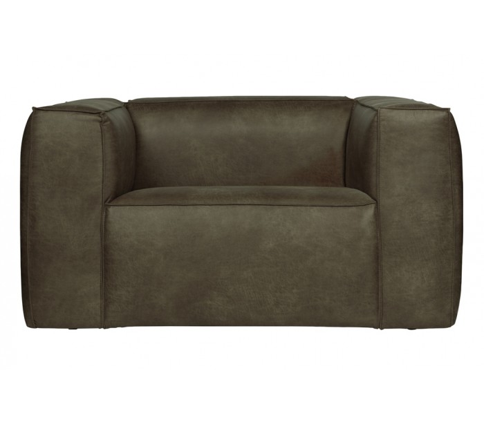 Lænestol i læder B146 cm - Vintage armygrøn