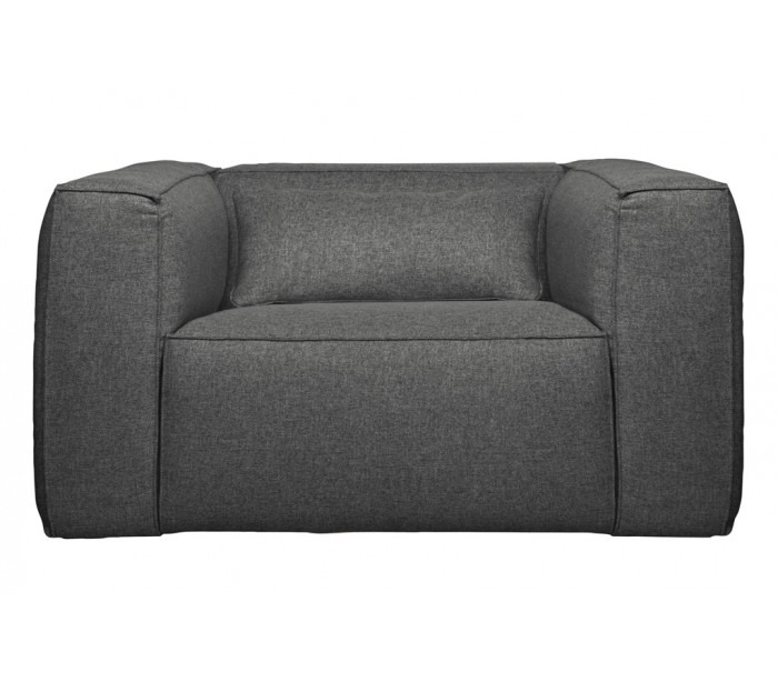 Moderne lænestol udført i et lækkert design af grå polyester og bomuld. Stolen måler 146 x 98 cm og er polstret med højkvalitets skum og nosag fjedre. En sand flyder, der næsten har sofastørrelse. Der medfølger pyntepude.