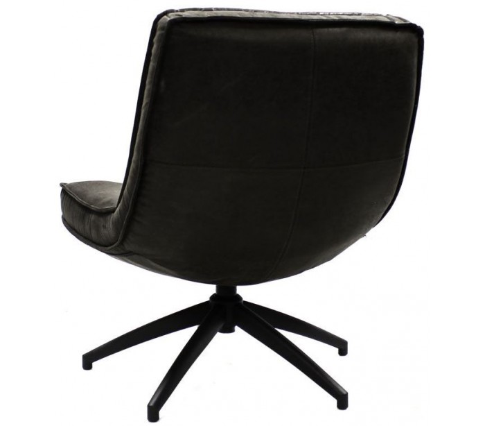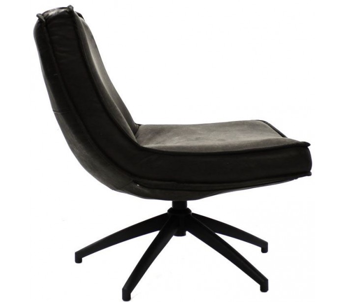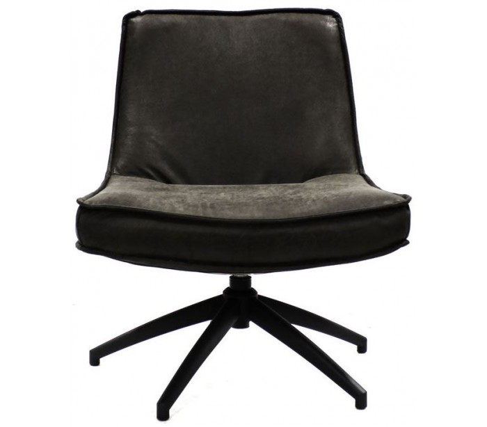 Loungestol i et industrielt design, fremstillet med sæde i vintage antracitfarvet økolæder (70% læder/30% polyester) og stel i sortlakeret metal. Stolen måler 80 cm i højden over ryggen og med siddehøjde på 42 cm.