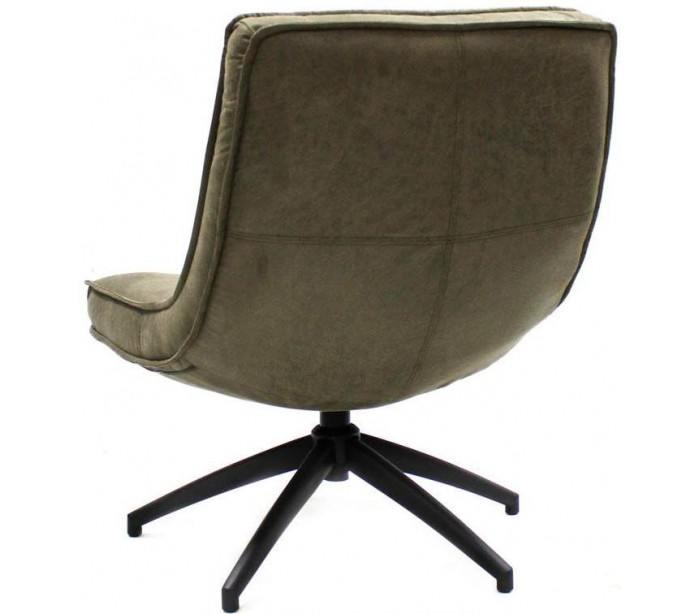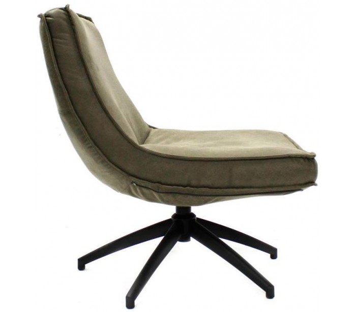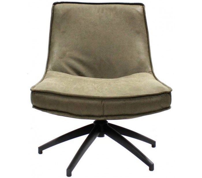 Loungestol i et industrielt design, fremstillet med sæde i vintage grøn økolæder (70% læder/30% polyester) og stel i sortlakeret metal. Stolen måler 80 cm i højden over ryggen og med siddehøjde på 42 cm.