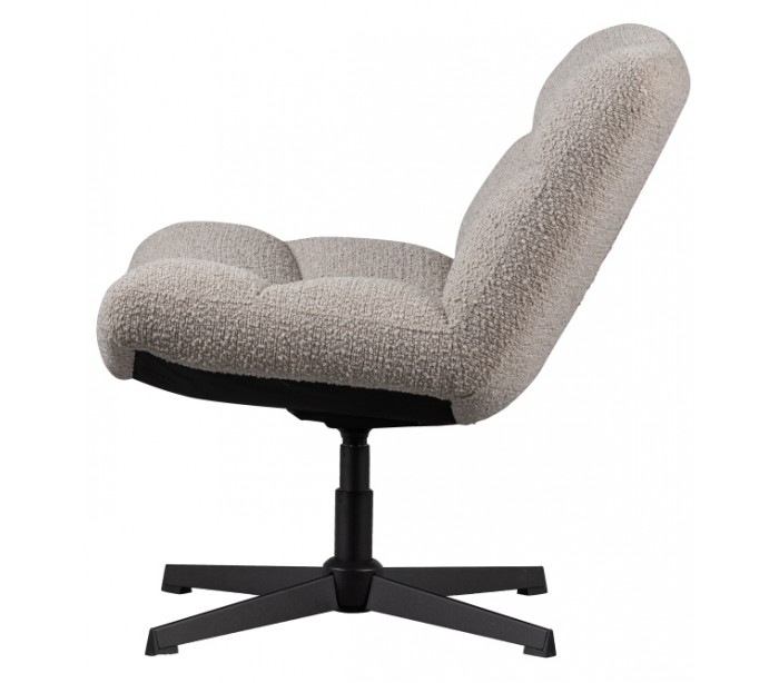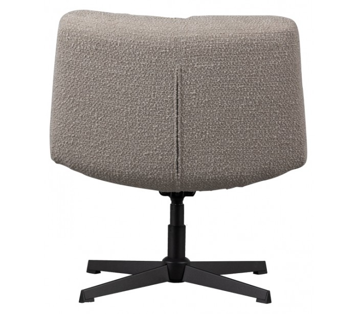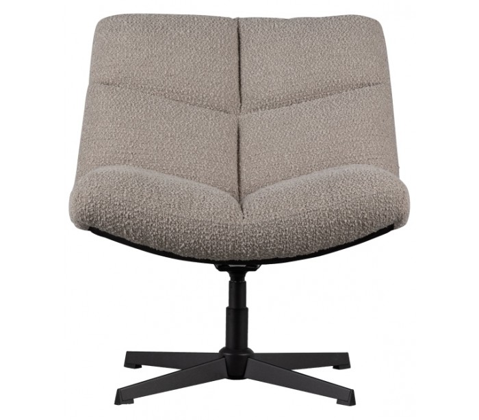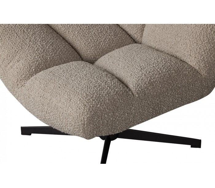 Rotérbar lænestol udført i et moderne design af sandfarvet polyester og sortlakeret metal. Lænestolen måler 80 cm i højden og 75 x 75 cm i bredde og dybde. Siddehøjden er 48 cm og siddedybden 52 cm.