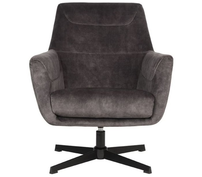 Rotérbar lænestol udført i et design af antracitfarvet velour og stel i sortlakeret metal. Lænestolen måler 90 cm i højden og 75 cm i bredden og er polstret med højkvalitets skum.