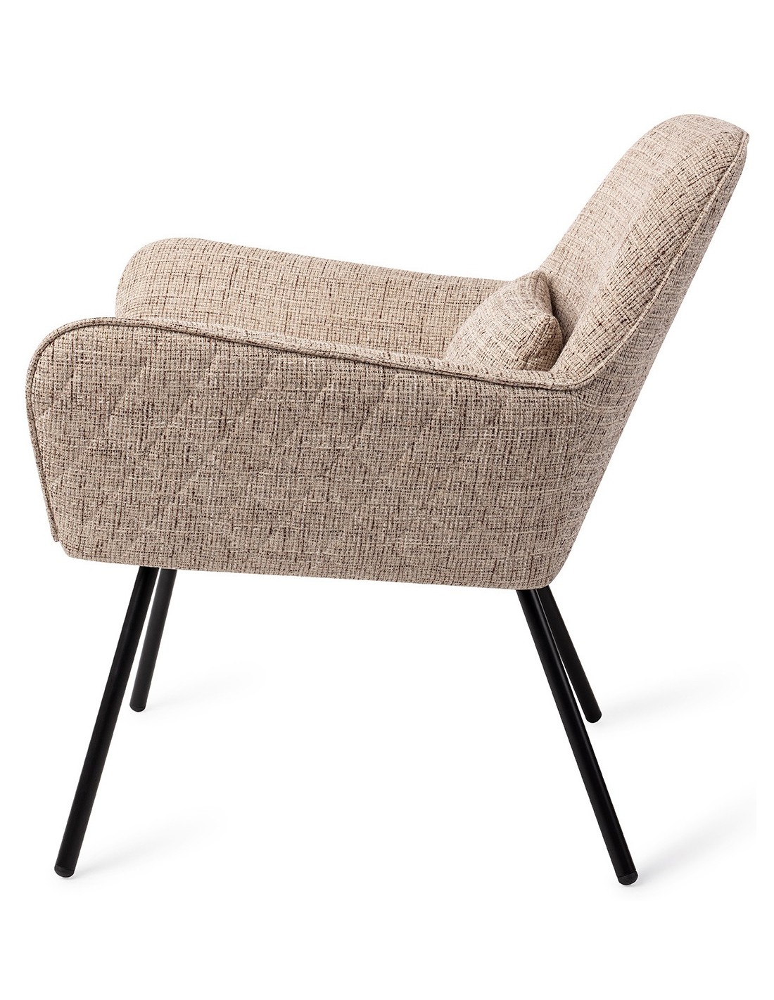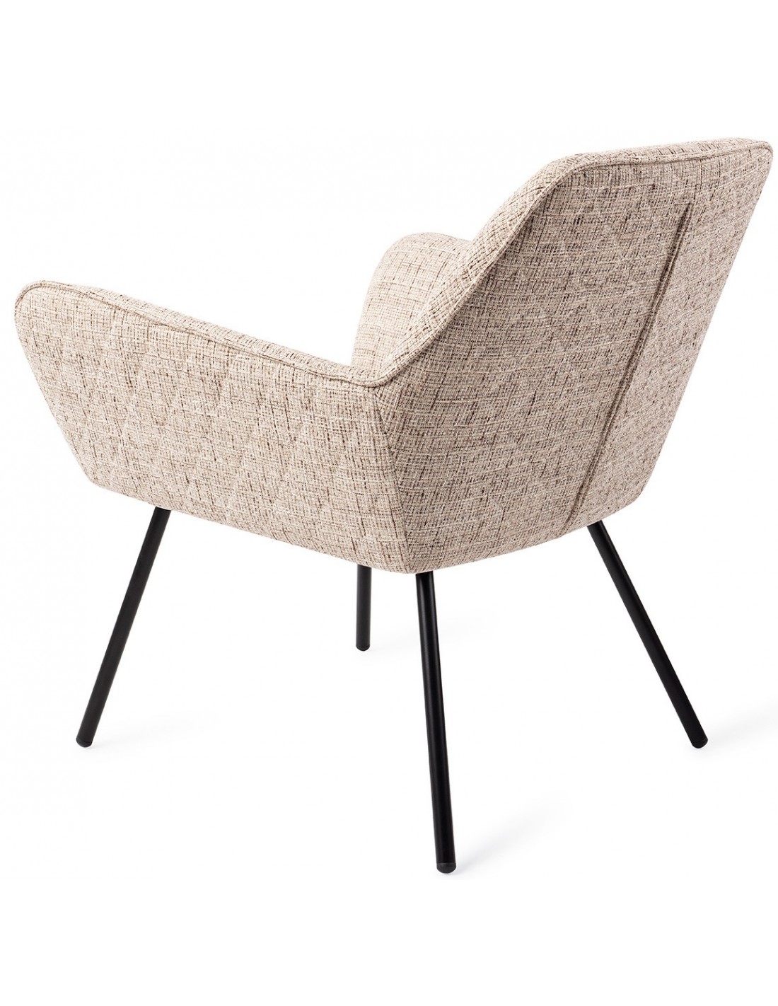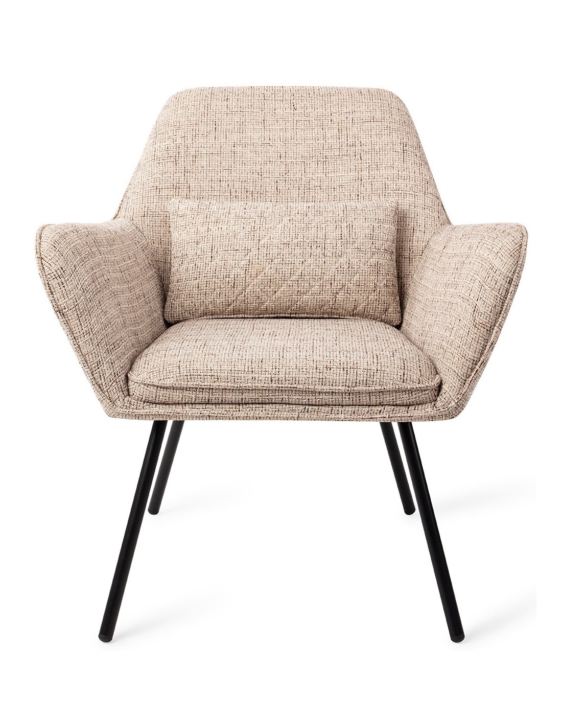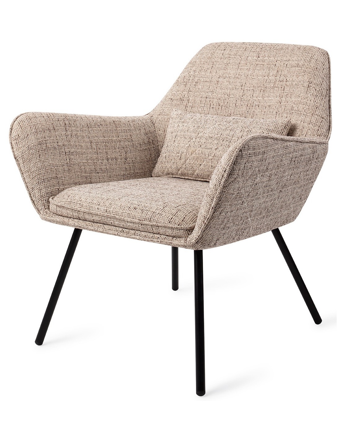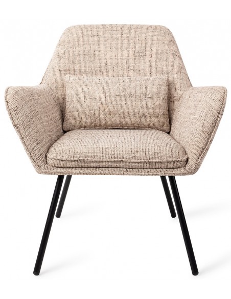 Sanno lænestol i et moderne design, fremstillet i hvedefarvet polyester og stel i sortlakeret metal. Lænestolen måler 80 cm i højden over ryggen og med siddehøjde på 44 cm.