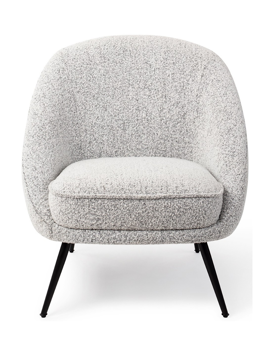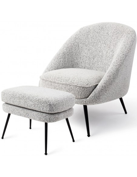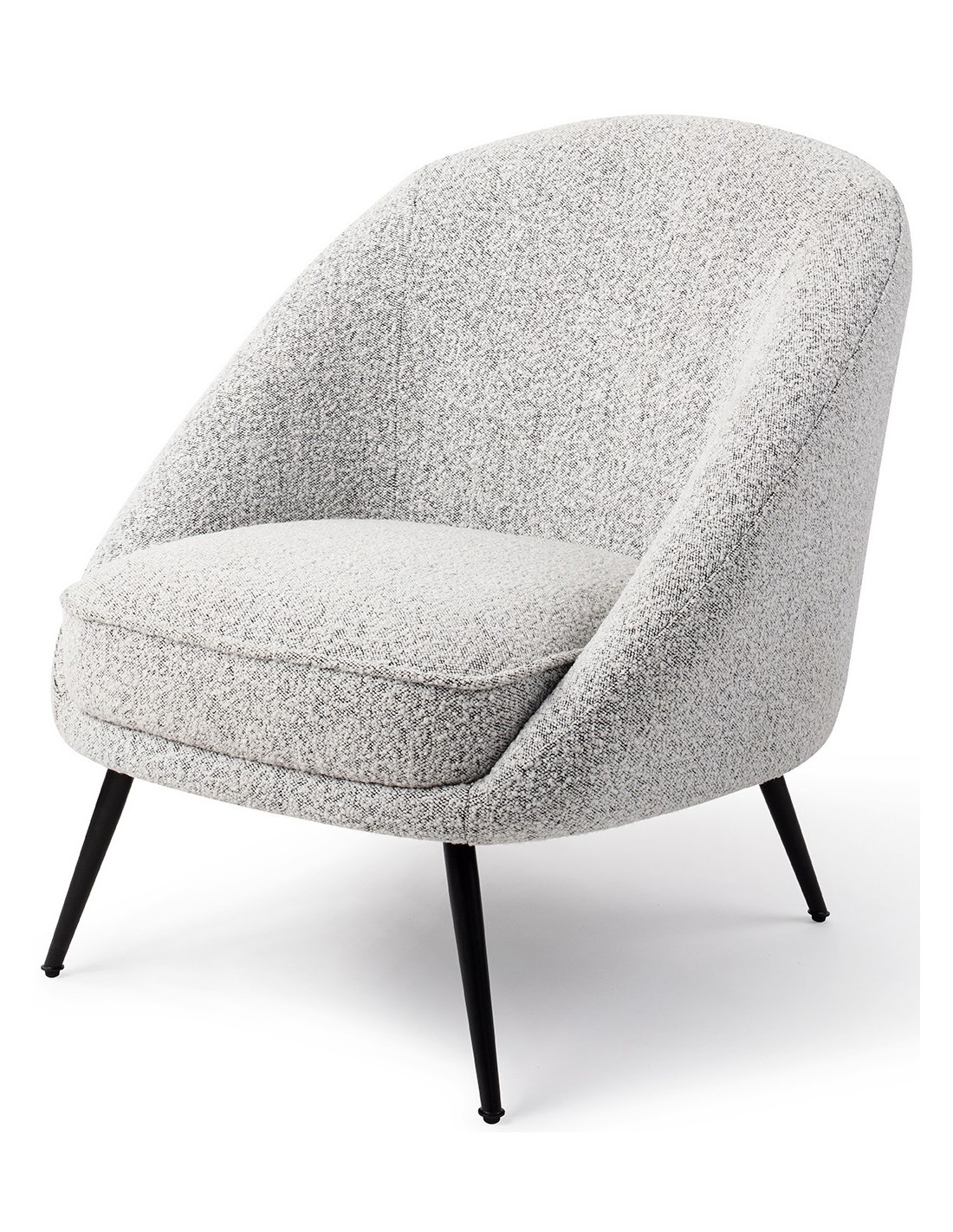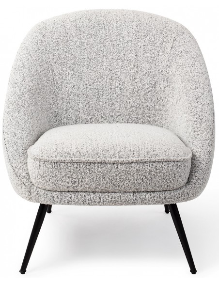 Rebun lænestol i et moderne design, fremstillet i grå polyester og stel i sortlakeret metal. Lænestolen måler 83 cm i højden over ryggen og med siddehøjde på 45 cm.