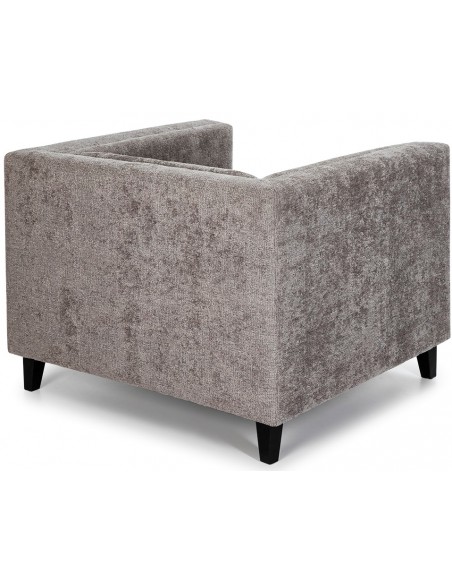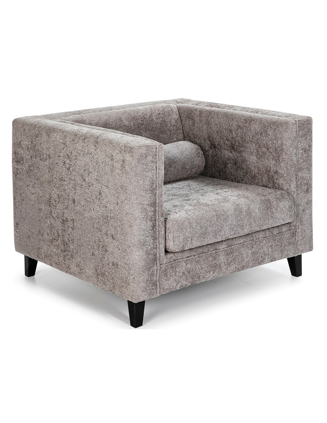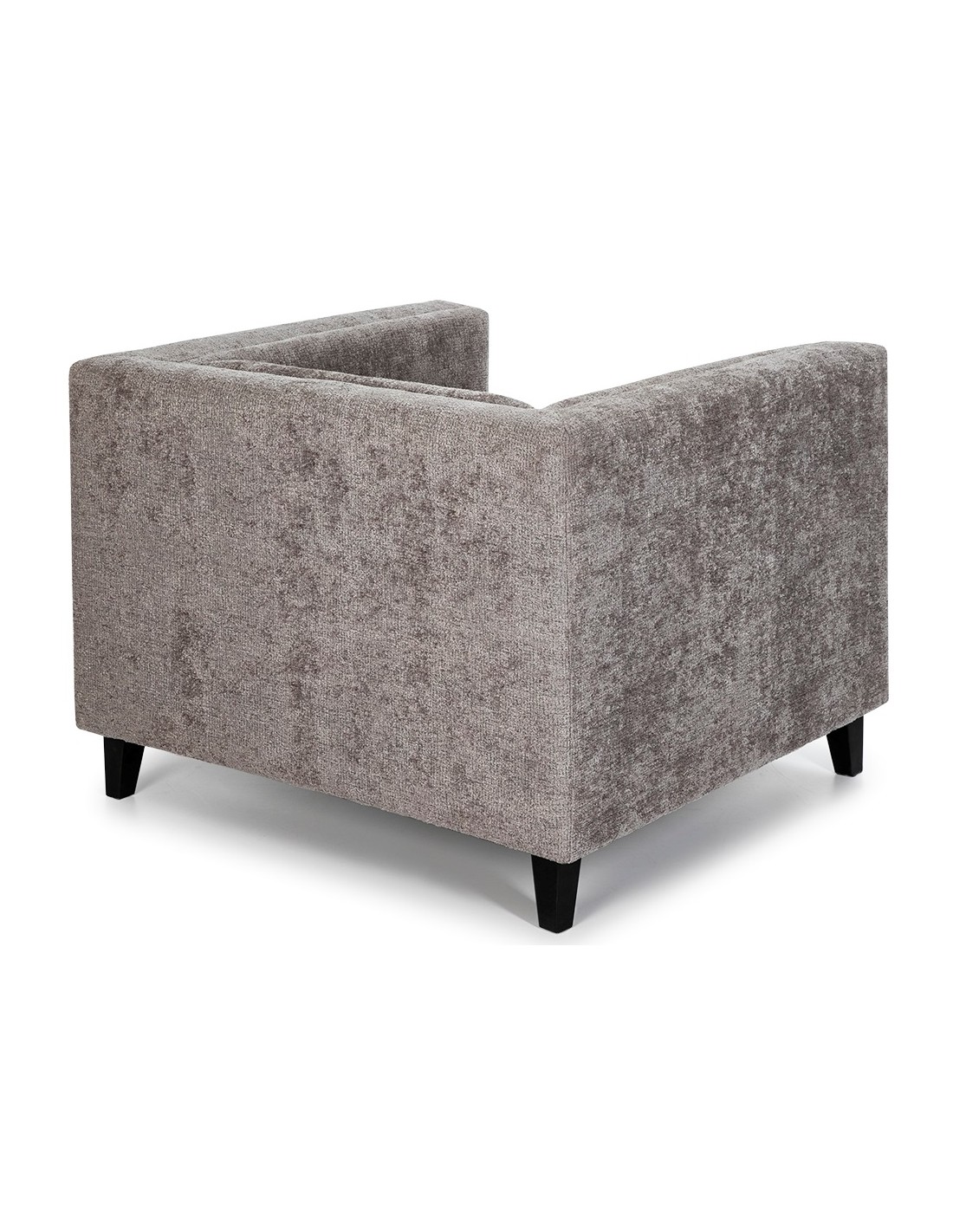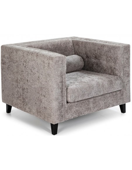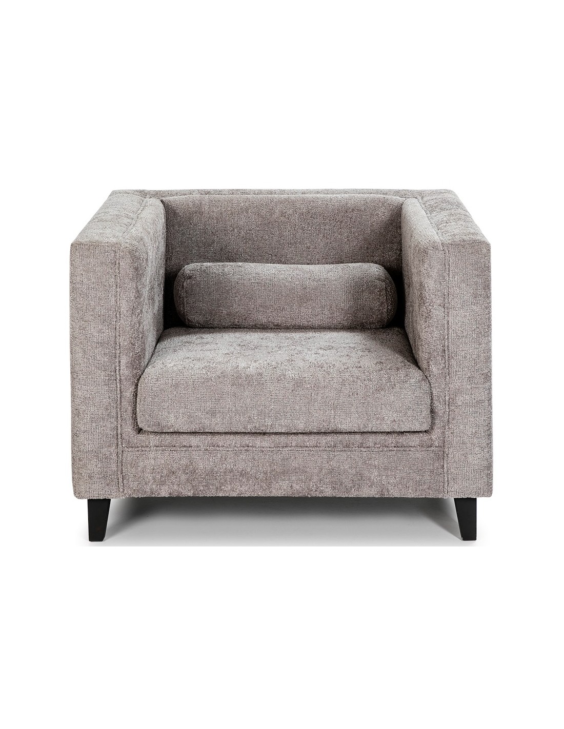 Lænestol udført i et stilrent design af gråmeleret vamset polyester og med ben i sortlakeret træ. Stolen måler 70 cm i højden over ryggen og 102 x 95 cm i bredde og dybde. Siddehøjden er 45 cm.