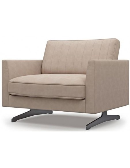 Riviera Maison lænestol, udført i et luksuriøst design af beige genanvendt polyester og stel i sortlakeret jern. Stolen måler 85 cm i højden over ryggen og 105 x 86 cm i bredde og dybde. Genanvendt polyester et et fantastisk fænomen, der hjælper med at fjerne plastik fra verdenshavene, da polyesteren er fremstillet af denne plastik. Et fantastisk komfortabelt og blødt materiale.