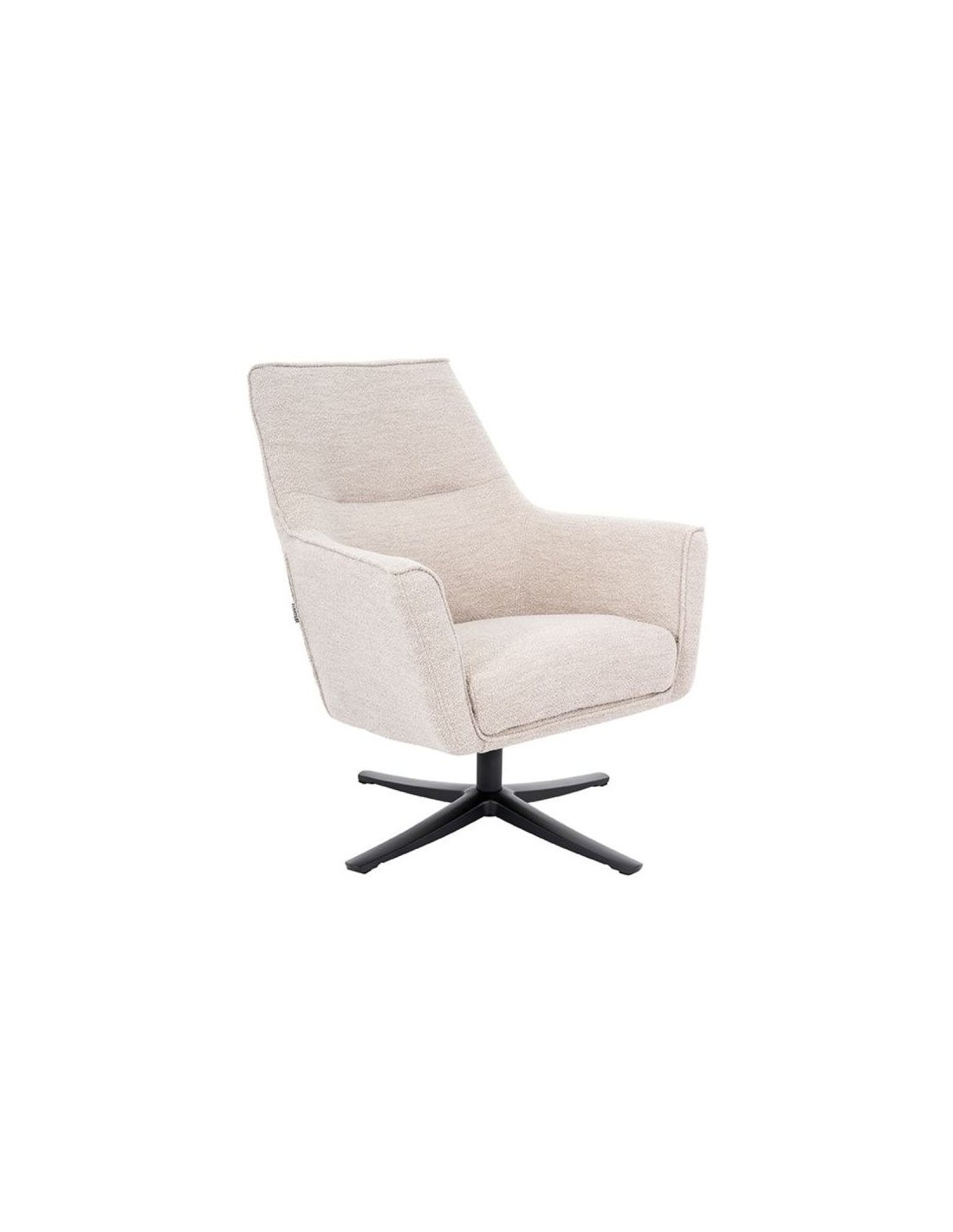Rotérbar lænestol udført i et design af naturfarvet boucle polyester og stel i sortlakeret metal. Lænestolen måler 90 cm i højden og 75 cm i bredden og er polstret med højkvalitets skum.