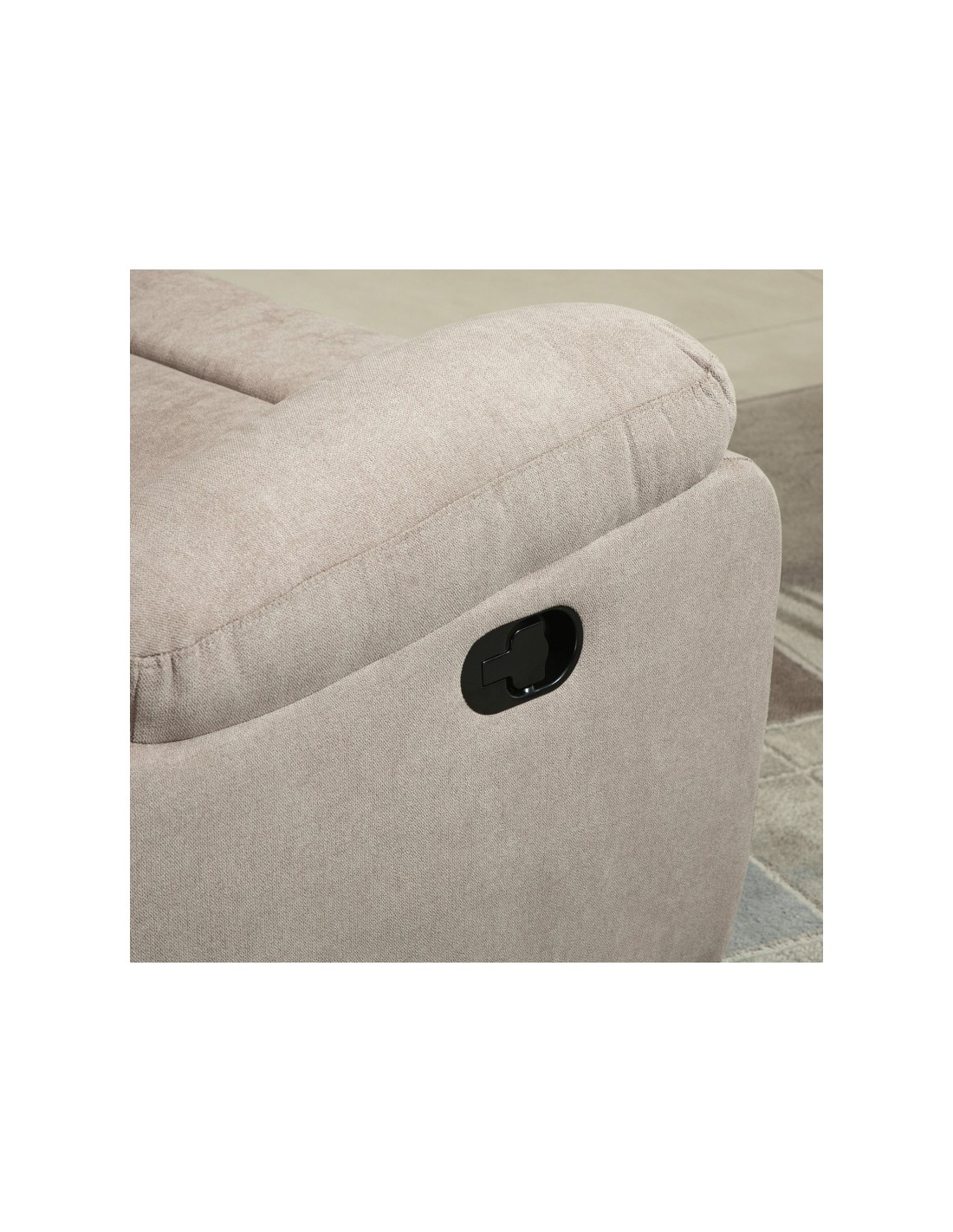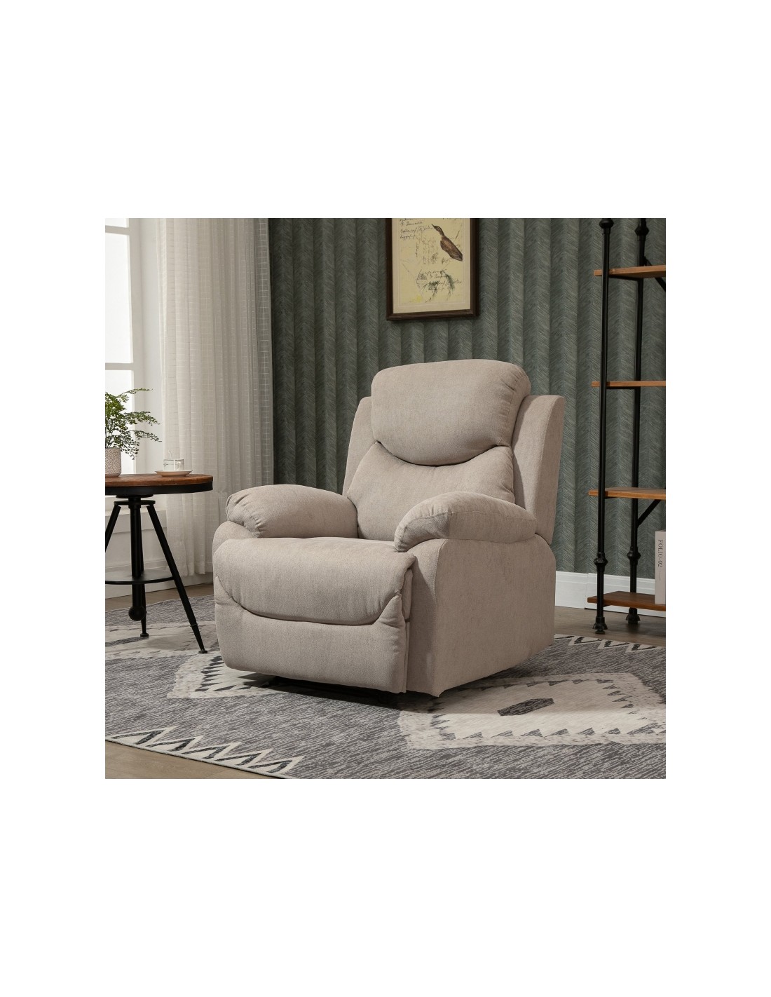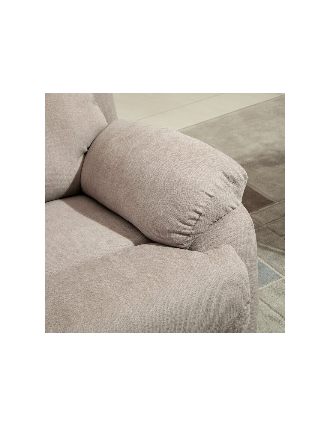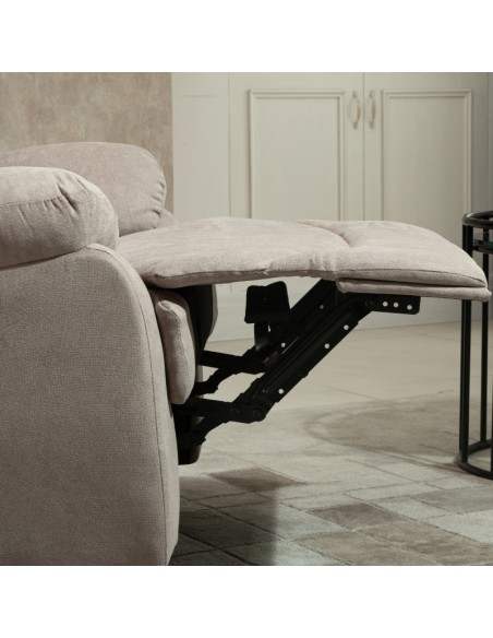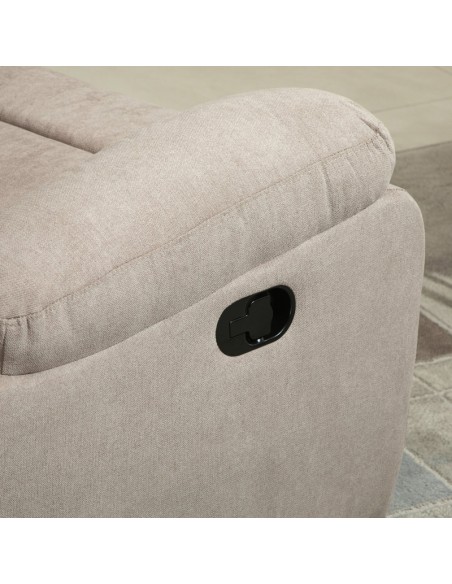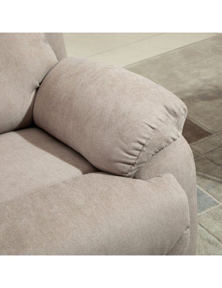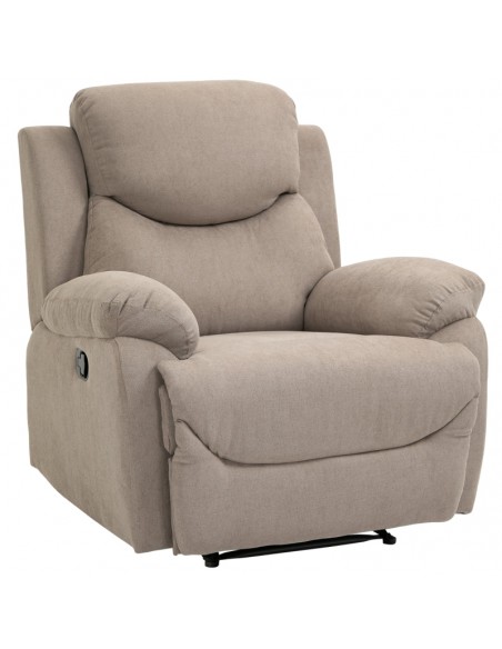 Loungestol i et design af beige linned. Stolen kan lægges ned i ryglænet og hejses i fodstøtten. Stolen måler 105,5 cm i højden over ryggen og med en siddehøjde på 48,5 cm. Stolens bredde er 97 cm og dybde 96 cm. Liggemålene er op til 166 cm i dybden.